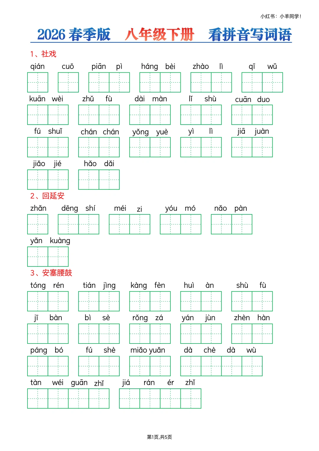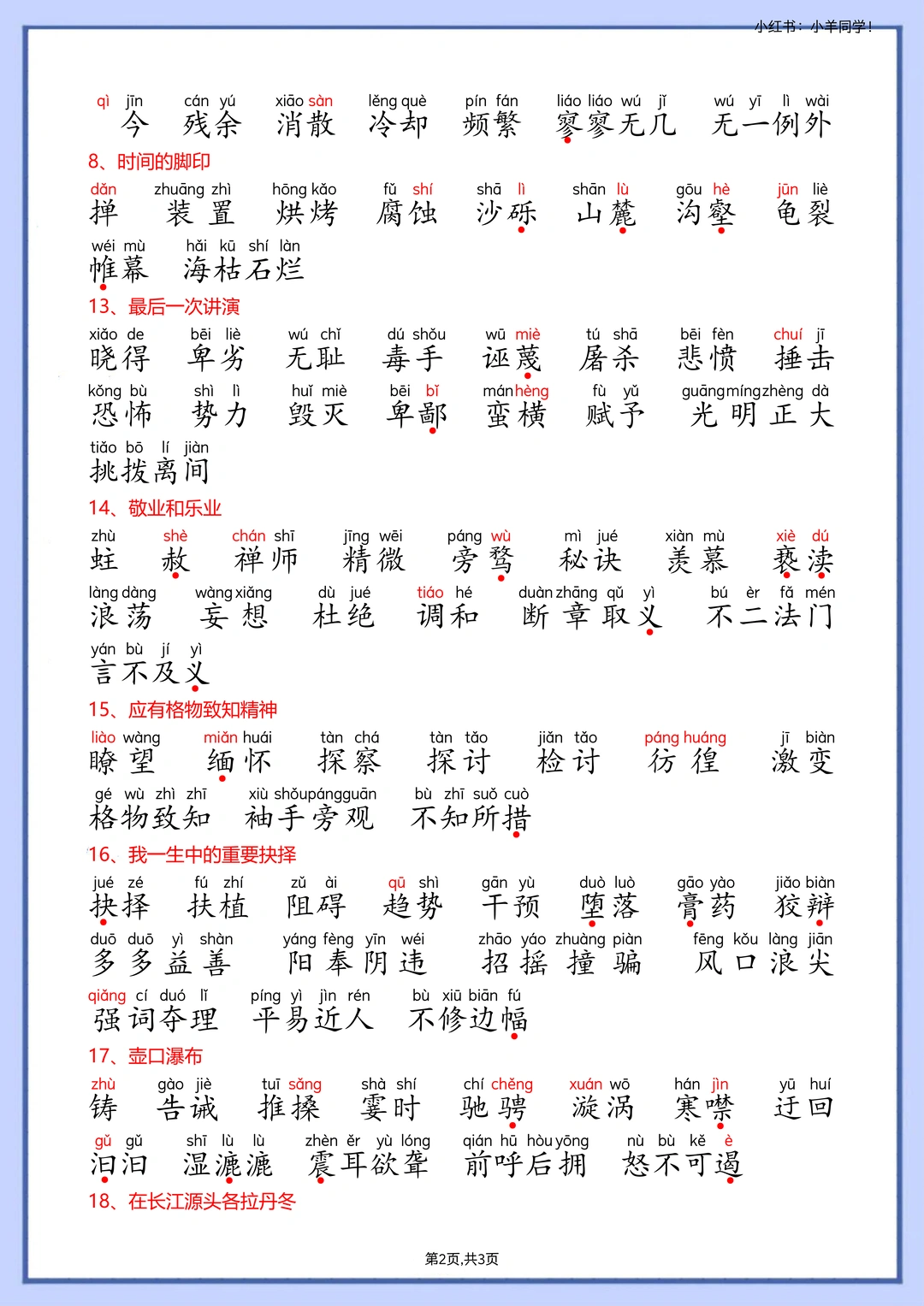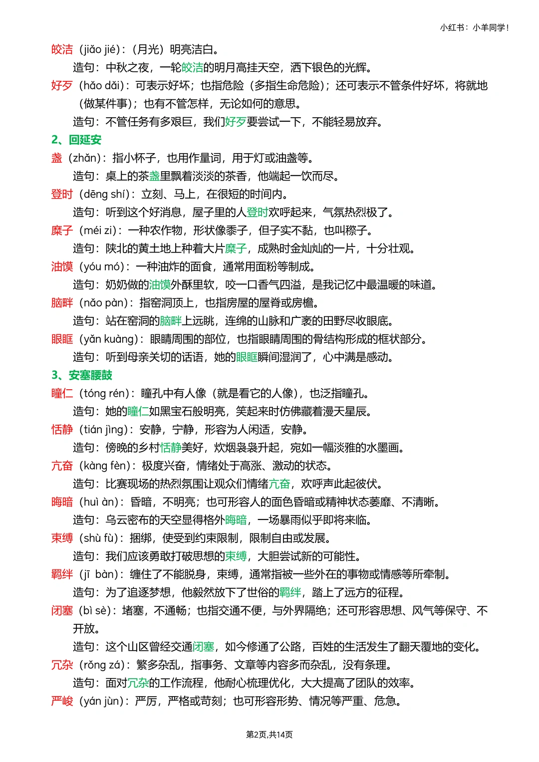 是改版后的新课标哦~ 一共四个文件: 🗂️词语表,3页。 🗂️看拼音写词语,5页。 🗂️词语解释,8页。 🗂️词语解释+造句,14页。 ⚠️原创整理,禁止转载发布网络平台或商用。