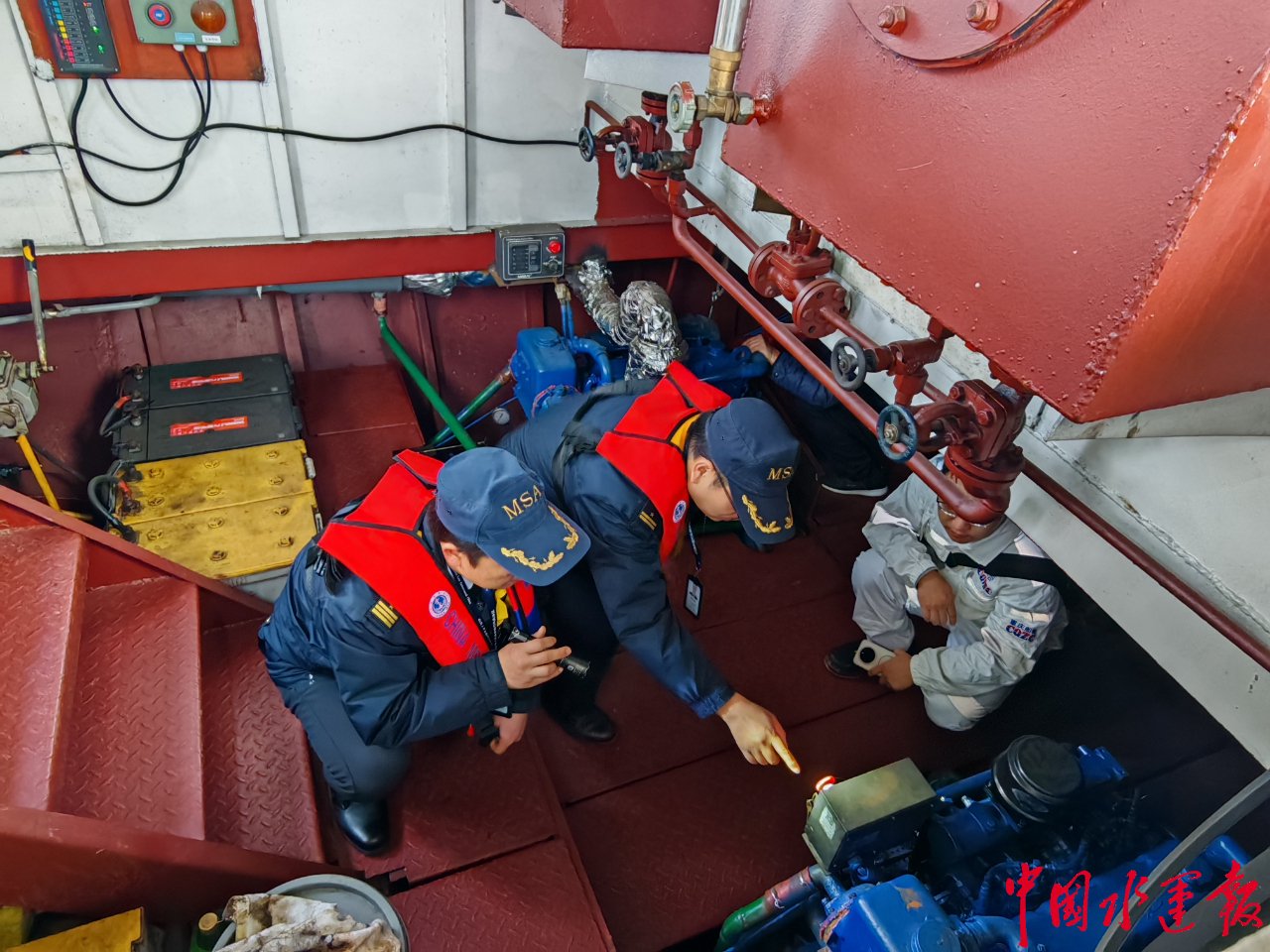 “模拟船舱起火,立即启动应急程序!”检查现场同步开展应急演练,模拟船舱起火、人员落水等突发场景。海事执法人员通过口述问答和实操指导,检验船员对应急装置的操作熟练度及应急处置规范性。“以前对部分应急流程不够熟悉,经过演练和指导,现在心里更有底了。”参与船员表示。海事执法人员还向船员重点宣贯行为规范,推动安全意识从“要我安全”向“我要安全、我会安全”转变。