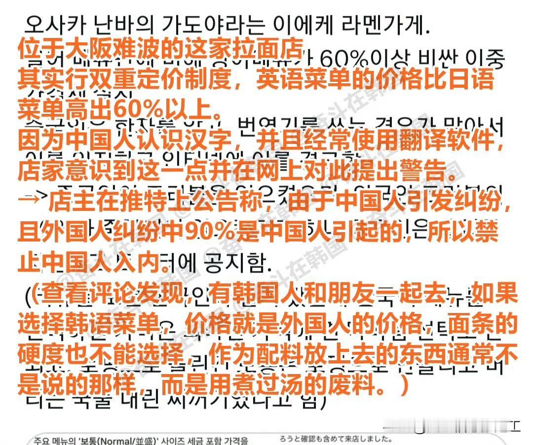 日本一家拉面店被揭发双重定价。 英文菜单的价格几乎是日文菜单的两倍,日语服务一