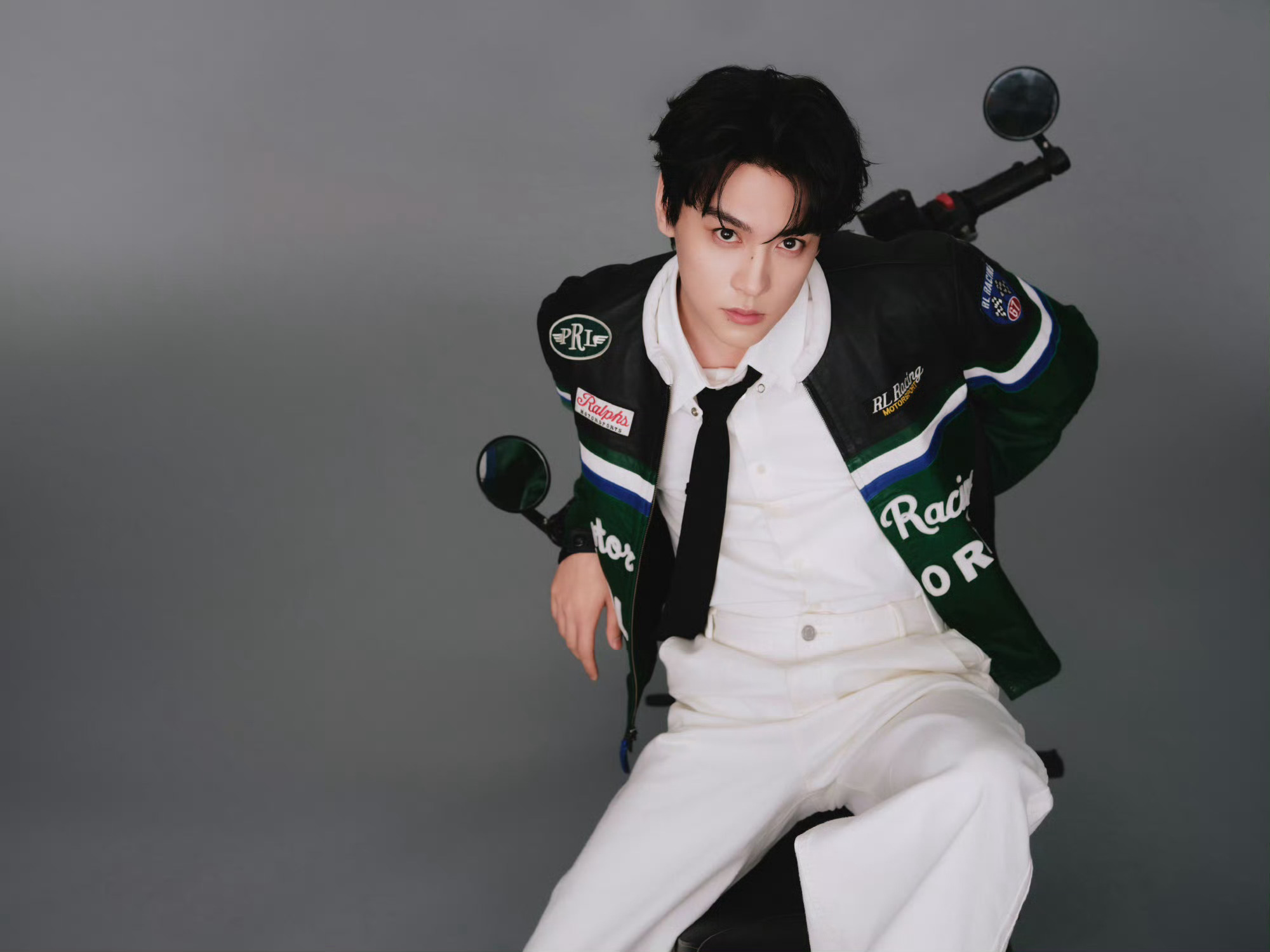 田栩宁 今日活动造型,身穿Polo Ralph Lauren绿色机车夹克,白色内搭和长裤,摩登酷帅的赛车手上线~ 📸🏍️🕶️