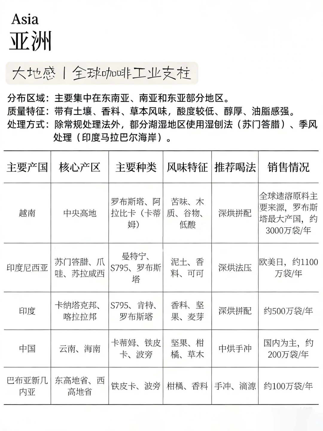 亚洲:醇厚低酸,咖啡工业重要原料产区