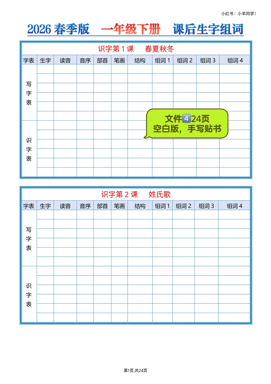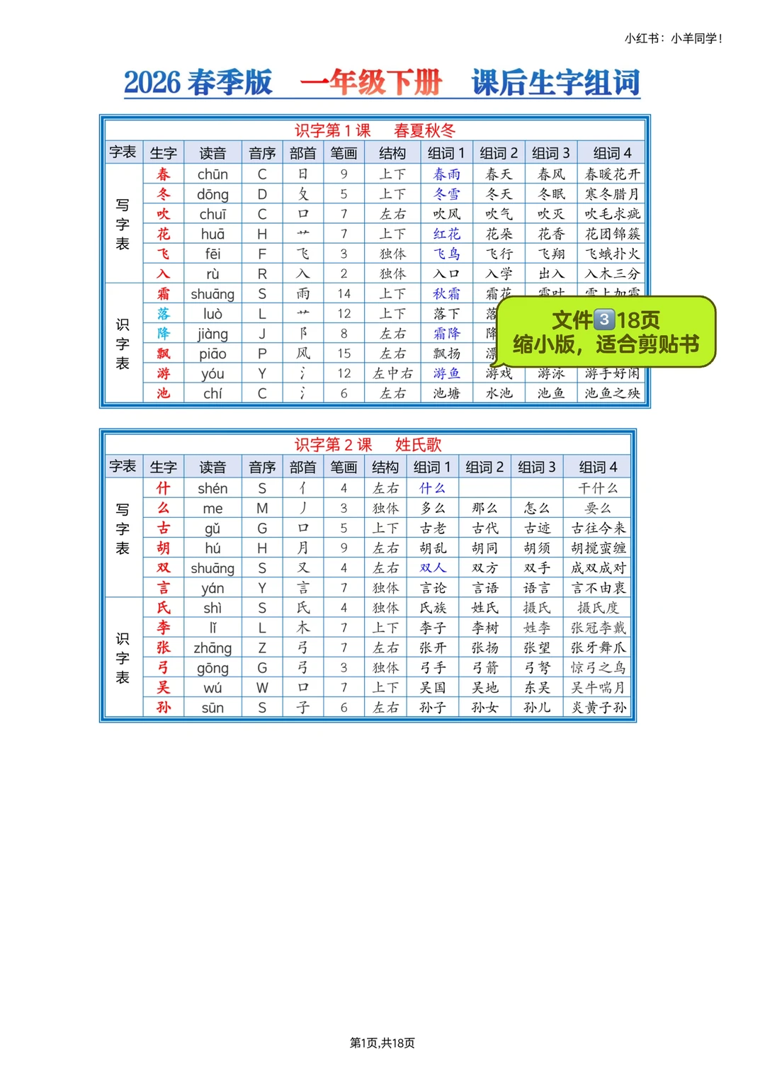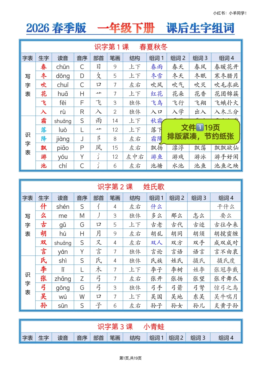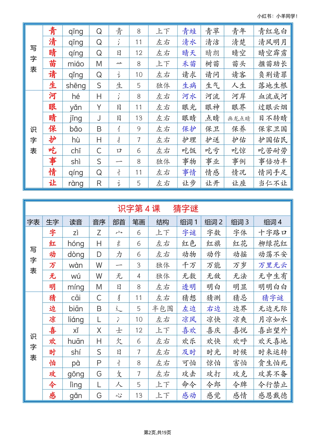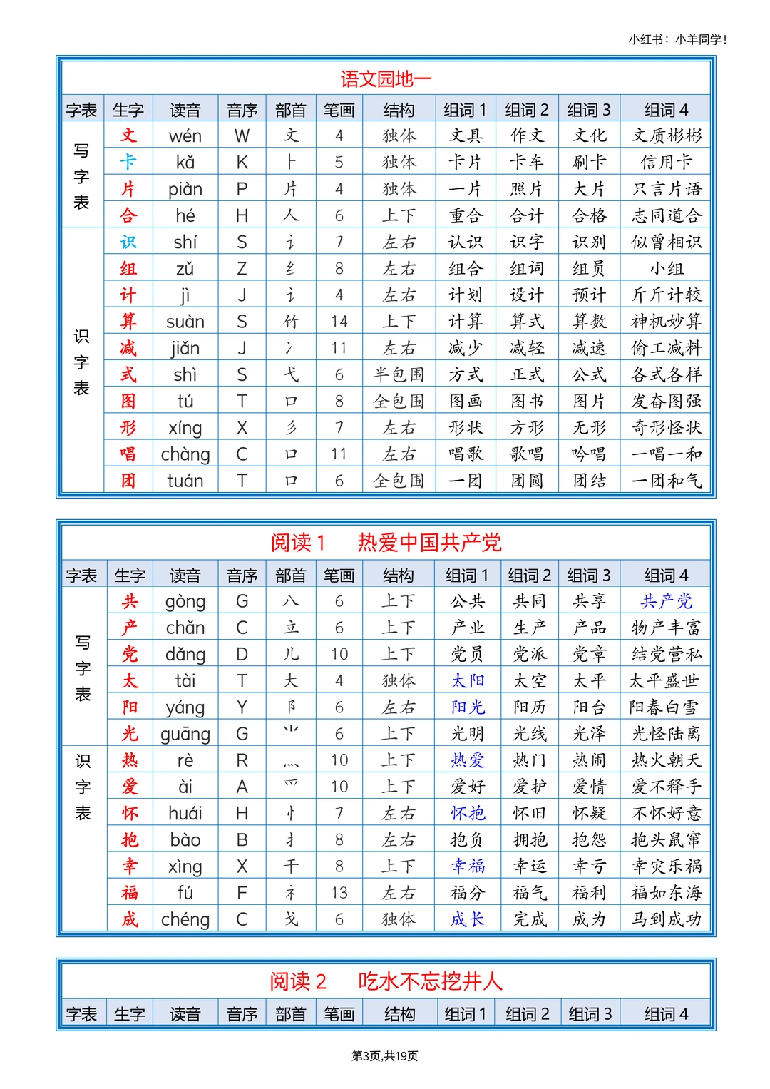 [种草R] 组词中蓝色字体为课文中出现的组词。