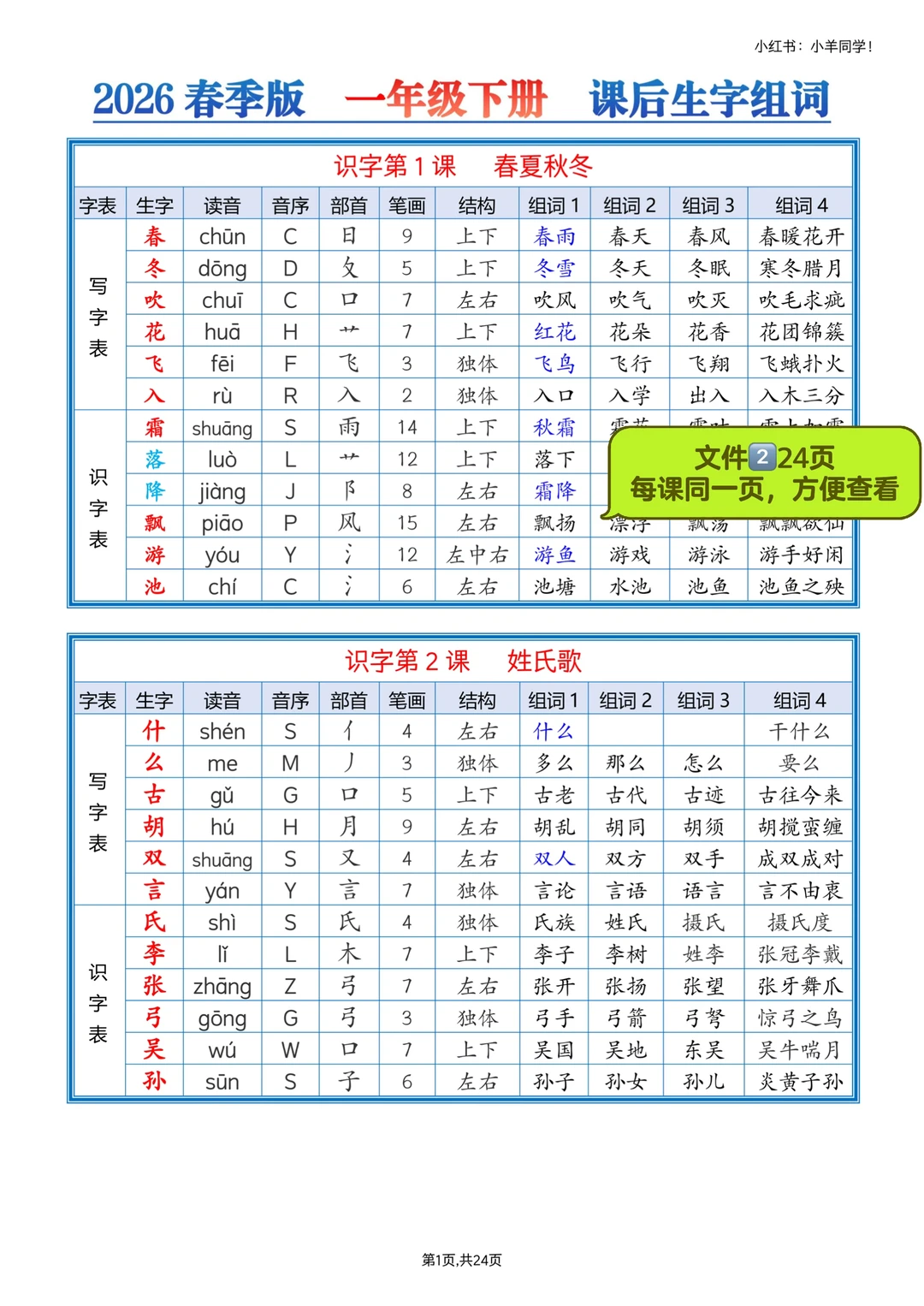 每课内容一页搞定,辅导预习复习不用翻页,效率 up