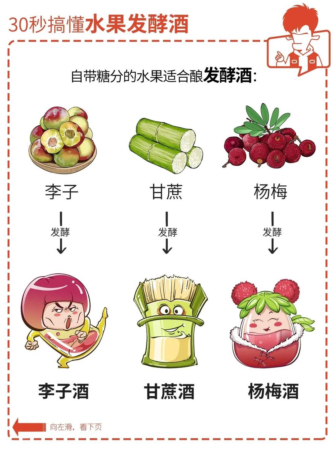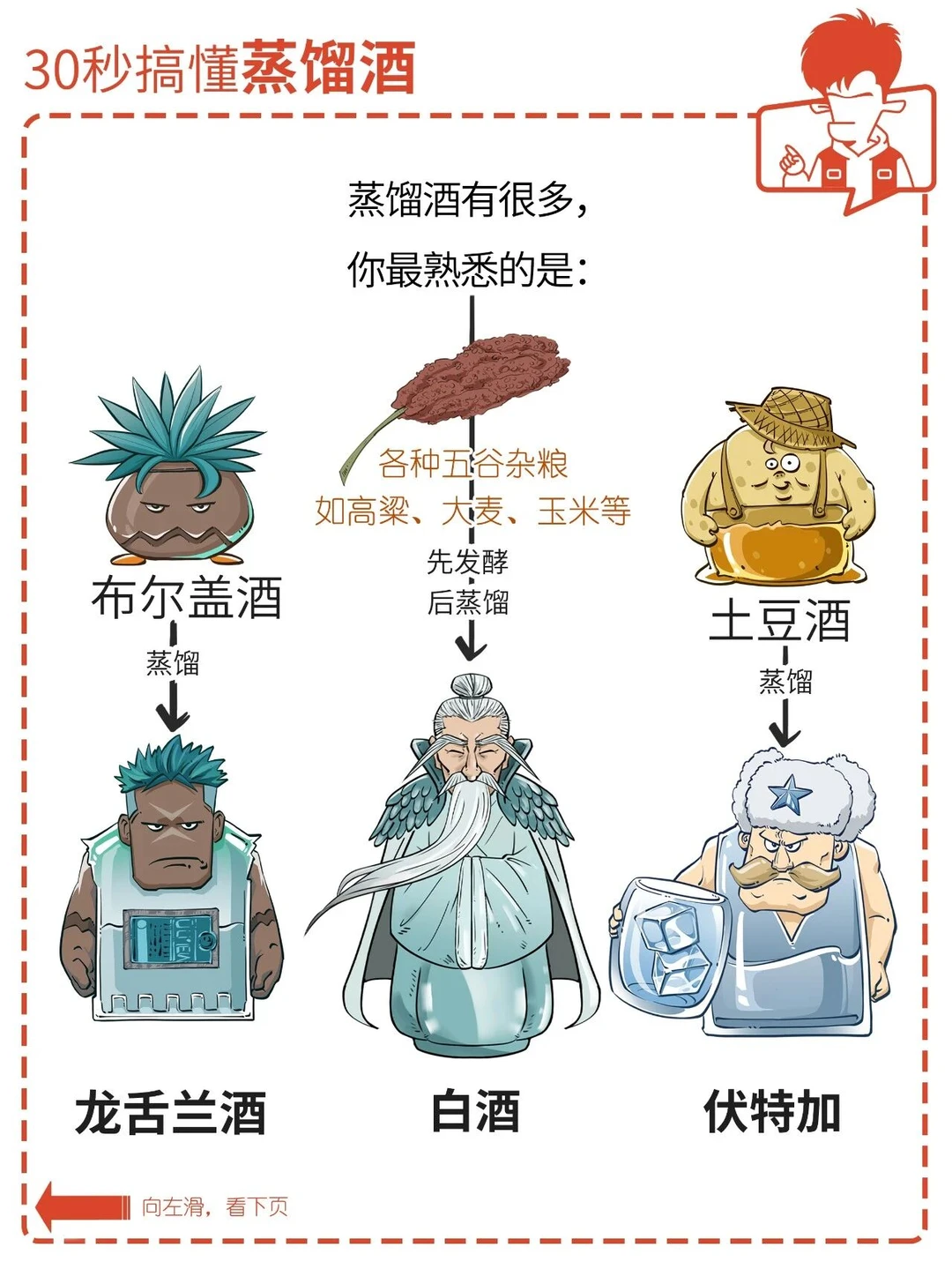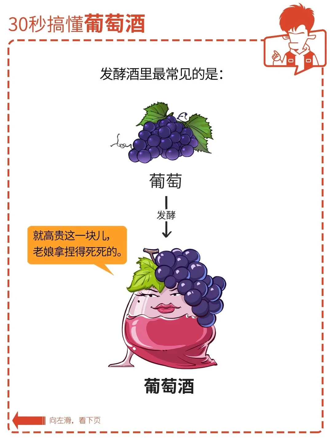 白酒、红酒、伏特加,啤酒、黄酒、白兰地,香槟、朗姆、威士忌…… 这么多酒,到底有啥不一样? 简单来说,所有酒的制作原理都一样, 本质上就干了一件事儿: 把植物里的糖发酵成酒精,再进行各种加工。 原料、酵母、酿造手法不同,造就了各种不同的酒。 只用 30 秒,混子哥带你速通各种类型的酒。