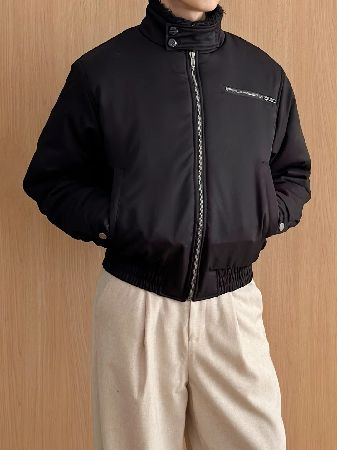当我拥有了一件短款显高棉服夹克