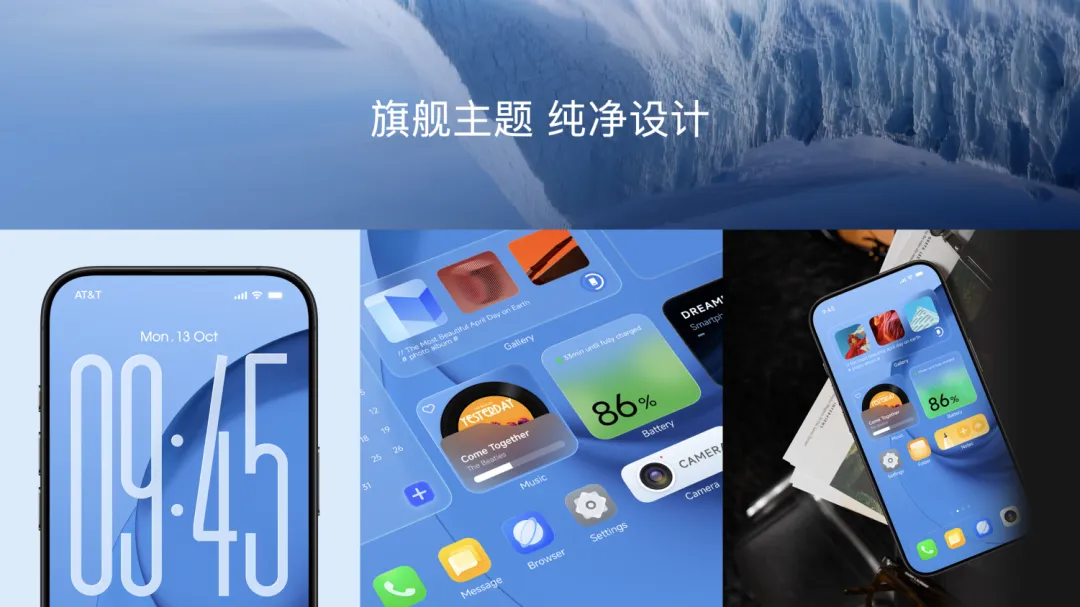 AI 美学设计板块,围绕用户场景打造个性化视觉体验,可根据个人纪念日,自动找出最开心的日子里的点滴回忆,作为动态主题和壁纸,每小时变换;另外通过每次解锁手机,会同步分析用户当前情绪,推送适合当前心情的美学主题和壁纸,实现平复和管理情绪。