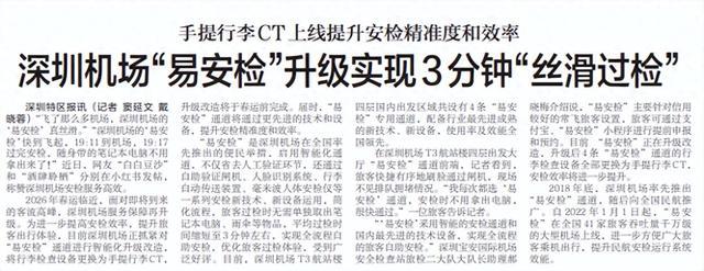 2026年春运临近,面对即将到来的客流高峰,深圳机场服务保障再升级。为进一步提高安检效率,提升旅客出行体验,目前深圳机场正抓紧对“易安检”通道进行智能化升级改造,将行李检查设备更换为手提行李CT,升级改造将于春运前完成。届时,“易安检”通道将通过更先进的技术和设备,提升安检精准度和效率。