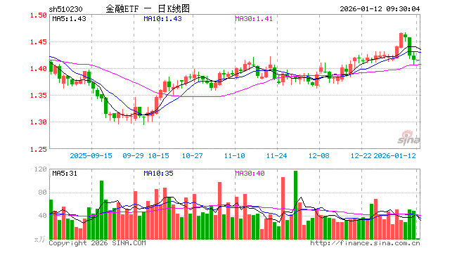 1月12日,金融ETF(510230)开盘涨0.00%,报1.415元。金融ETF(510230)重仓股方面,中国平安开盘跌0.14%,招商银行涨0.00%,兴业银行跌0.14%,中信证券涨0.00%,工商银行跌0.13%,农业银行跌0.40%,国泰海通涨0.05%,交通银行涨0.00%,江苏银行跌0.10%,浦发银行涨0.09%。