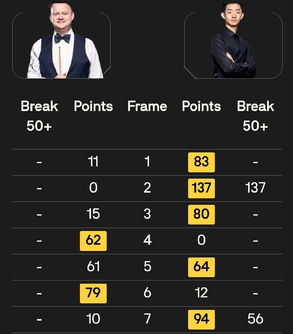 看不看都是6-2,所不同的是开局三连鞭还是四连鞭,当斯诺克大师赛的球台灯光亮起时,没人想到中国球员会用两场相同的比分炸响伦敦亚历山大宫。 赛前被外媒预测"最多赢一场"的中国军团,愣是把开赛首日打成了"中国时间"。 吴宜泽和肖国栋这两位不算顶尖的选手,用几乎复刻的比分掀翻了世界排名前十的对手,让熬夜看球的中国球迷在弹幕里刷出了满屏的"不敢信"。 21岁的吴宜泽站在墨菲面前时,不少观众还在翻他的资料,这位首次征战大师赛的小将,上手就给了"稳定先生"一个下马威。 第三局那个单杆137分,白球走位比教科书还标准,当黑球落袋的瞬间,墨菲坐在椅子上慢悠悠鼓掌,镜头扫过他微蹙的眉头这哪是新人该有的气场?赛后采访时墨菲说得实在,"他比我更像在打主场,那种放松劲儿,我十年前才有过"。 肖国栋的比赛更像是场深夜惊喜,当多数中国球迷熬不住睡去时,这位34岁的老将正在上演4-0的梦幻开局。 连续四杆60+的进攻,把以磨控著称的塞尔比打得频频起身擦杆,早上醒来刷到结果的球迷,翻遍社交平台找录播,有人调侃"下次该给中国球员的比赛设个闹钟分类"。 有意思的是,肖国栋赛后说自己赛前特意换了副老球杆,"用惯了的家伙,握在手里踏实"。 赛前舆论可不是这样,6名中国选手参赛创了纪录,但签表出来时,评论区满眼都是"死亡之组""陪跑预定"。 毕竟除了赵心童,其他几位世界排名都在30名开外,有人翻出十年前丁俊晖首夺大师赛亚军的旧闻,感慨"黄金一代之后,中国斯诺克该出新人了"。 谁能想到,新人就这么在眼皮底下杀了出来,这两场胜利戳破了个老偏见:中国球员"外战软脚虾"的标签该撕了。 吴宜泽敢在关键球拼远台,肖国栋顶住塞尔比反扑时手都不抖,这种心理素质比比分更让人惊喜。 想起前几年世锦赛,有中国选手领先时被逆转,教练复盘说"不是技术差,是没见过大场面"。 现在看来,这些年轻球员的心脏,已经能扛住大师赛的聚光灯了,外媒这回是真坐不住了。 《斯诺克圣经》网站连夜发了篇"中国风暴席卷伦敦",配图用的就是吴宜泽握拳庆祝的画面。 欧洲体育的解说员甚至翻出吴宜泽15岁时的训练视频,"那时候他练球到凌晨,球房老板说这孩子总带着馒头来,饿了就啃两口"。 原来所谓的天赋异禀,不过是把别人喝咖啡的时间,都用在了擦巧粉上,现在训练馆的灯还亮着,吴宜泽的球杆套上还沾着伦敦的灰。 下一场他要碰更强的对手,但更衣室里他贴了张纸条:"昨天的6-2,明天不算数"。 肖国栋则在朋友圈发了张老照片,是十年前他第一次参加大师赛的合影,配文"球台还是那张,只是我眼神更亮了"。 或许这就是中国斯诺克最动人的地方,总有人在暗处扎根,然后突然在某天,让世界看见花开。