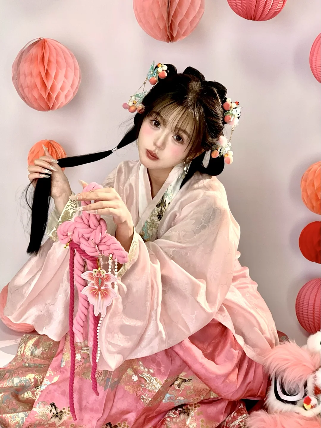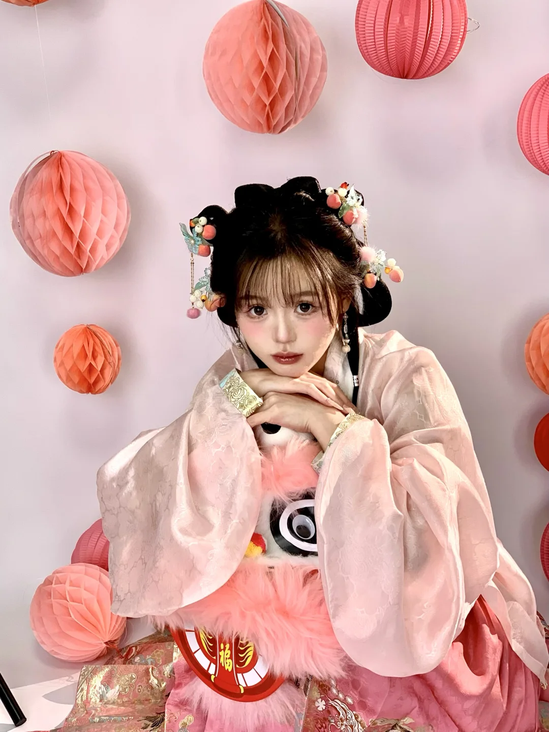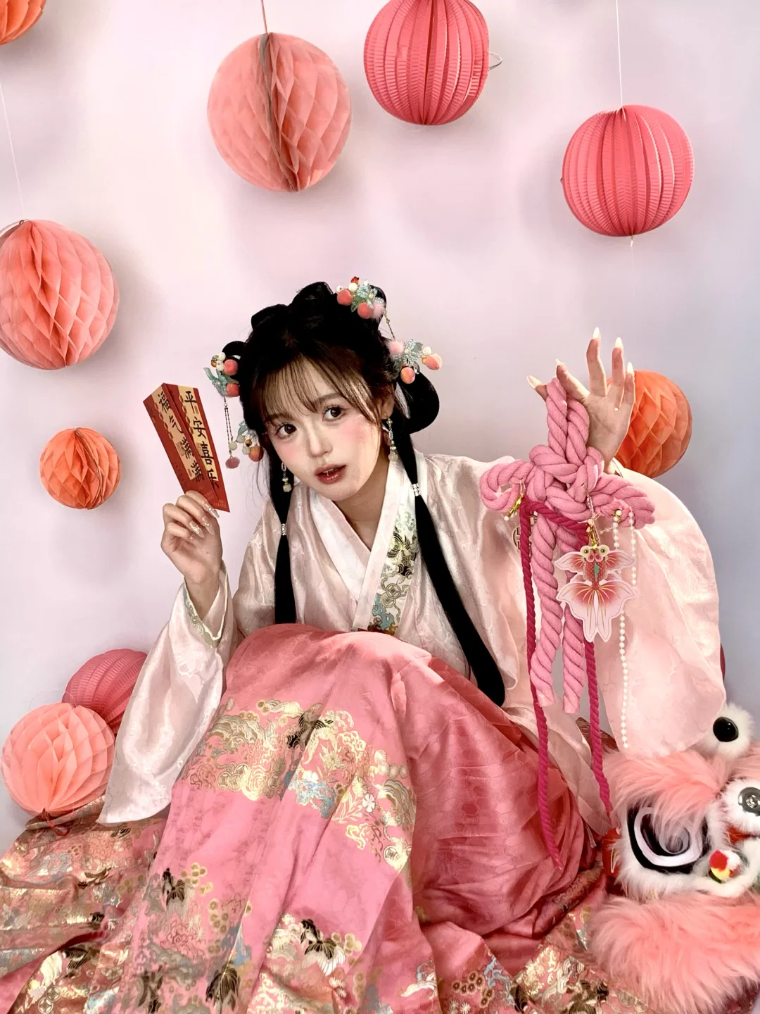 今天粉嫩嫩的|新年甜妹汉服小粉狮拍照姿势