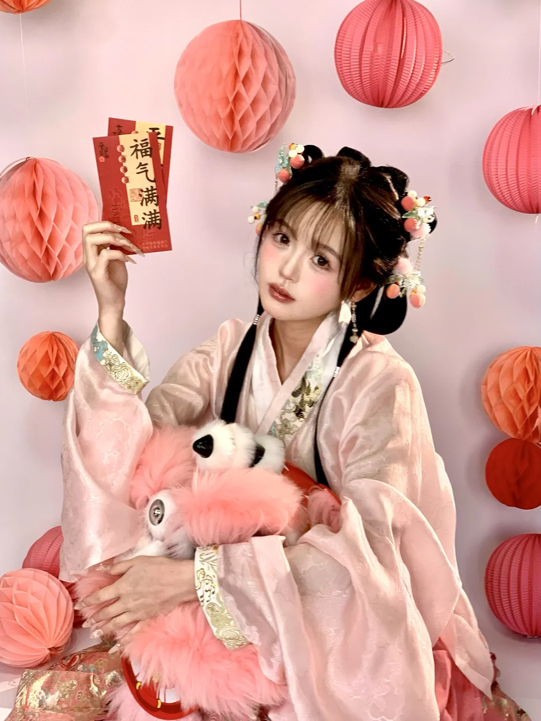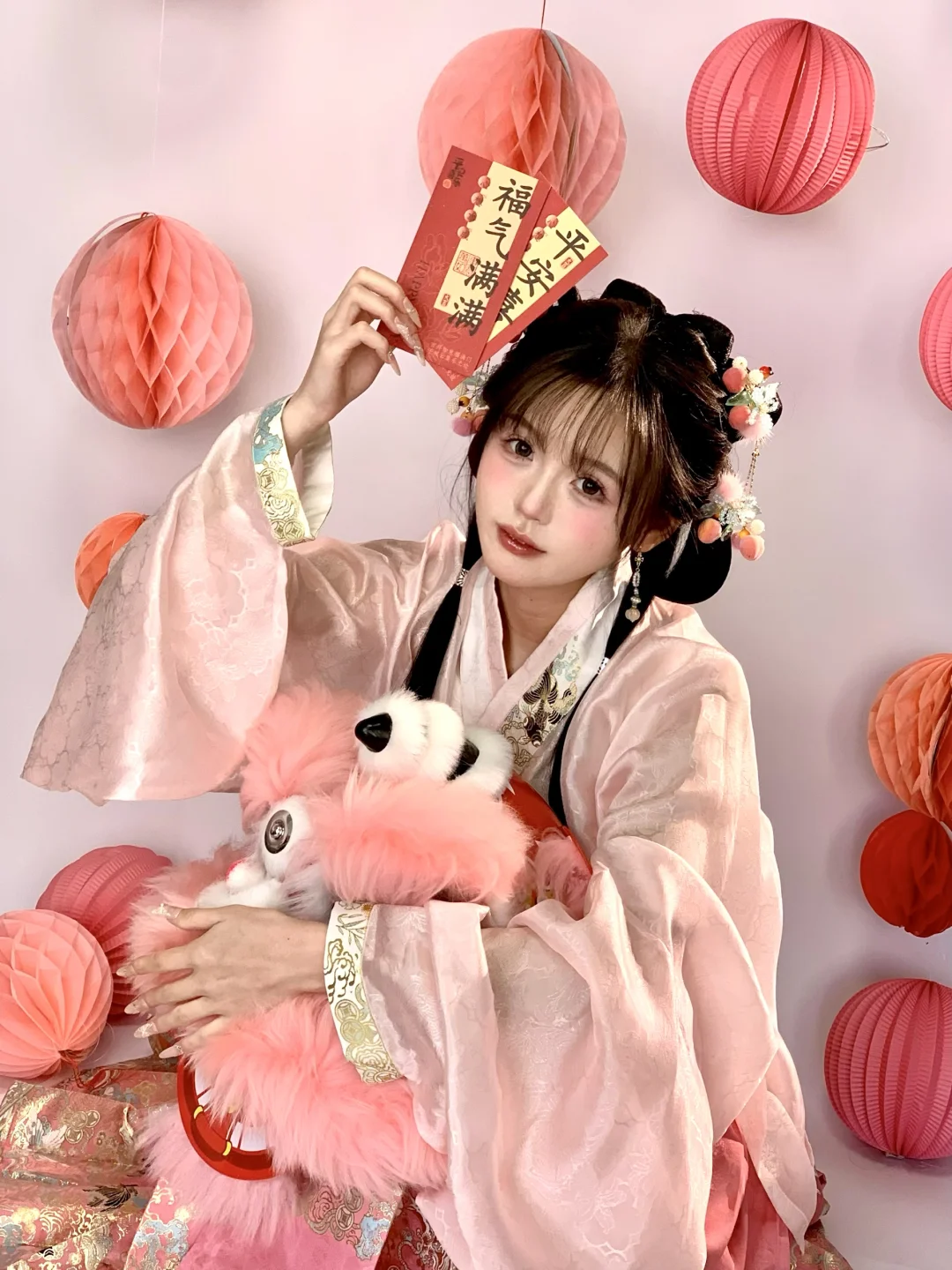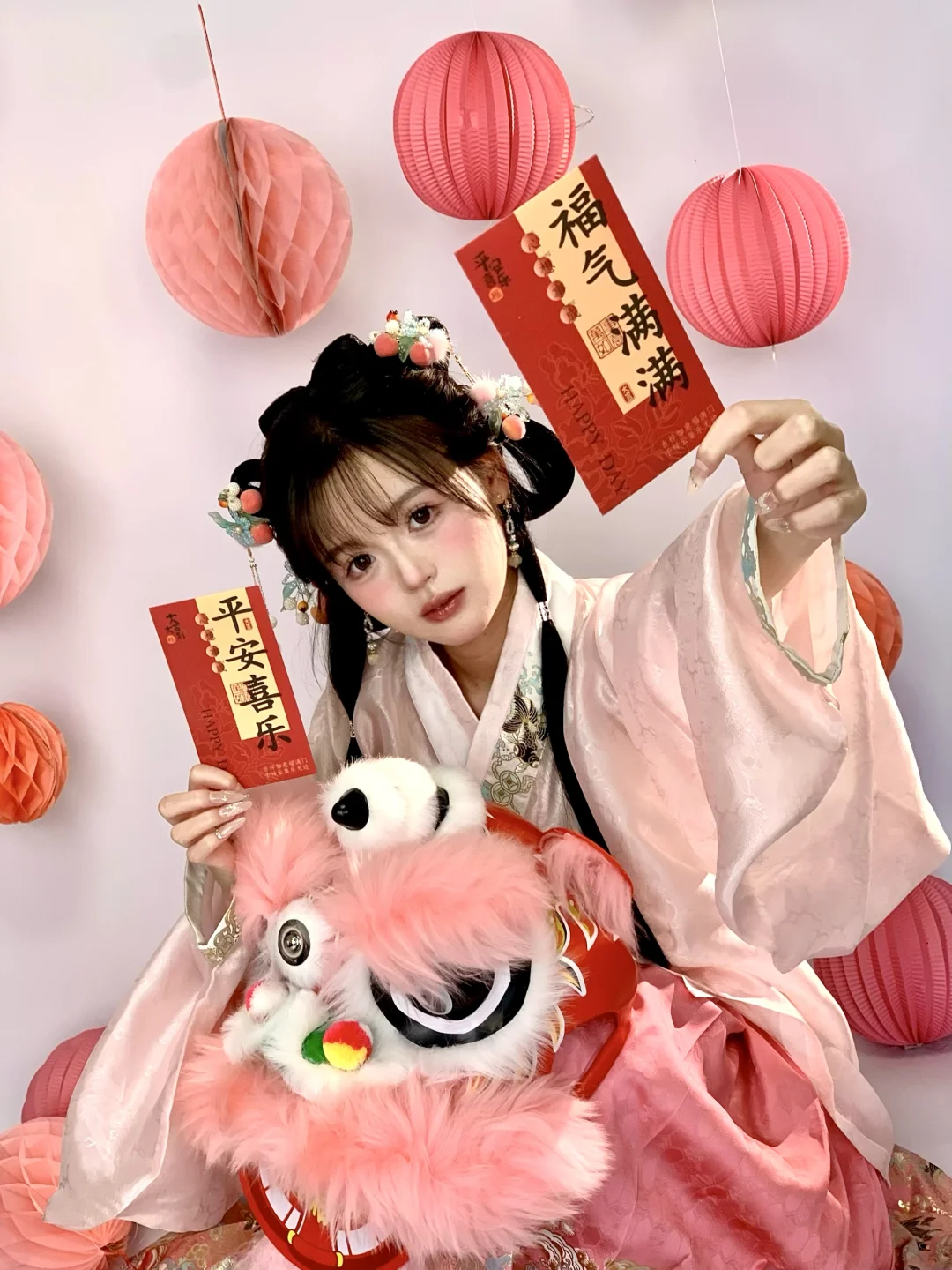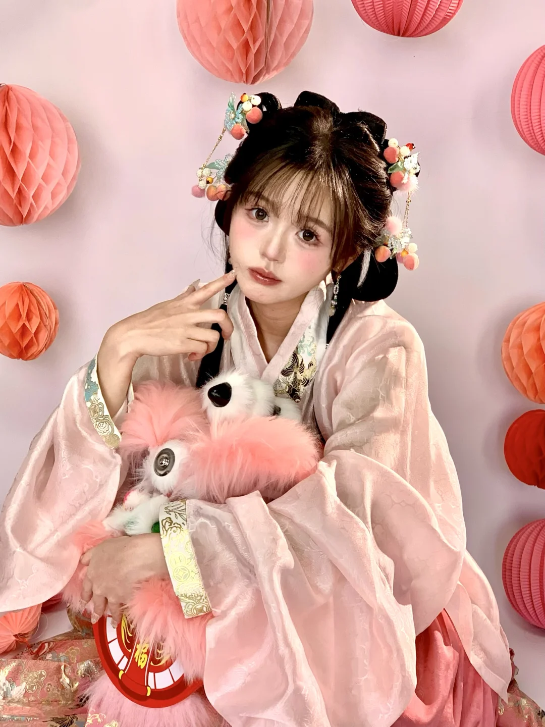 今天粉嫩嫩的|新年甜妹汉服小粉狮拍照姿势