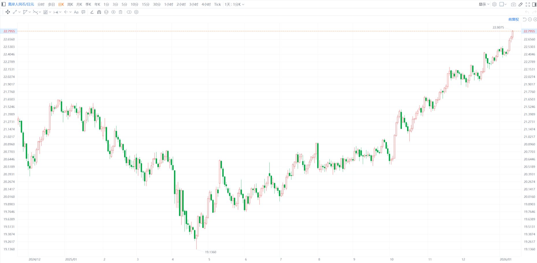 格隆汇1月13日|离岸人民币兑日元汇率报22.79,日内涨0.4%,创多年新高。随着日元汇率持续走软,日本财务大臣片山皋月也做出暗示,称日本政府准备加大干预汇率力度,以阻止日元进一步下跌。