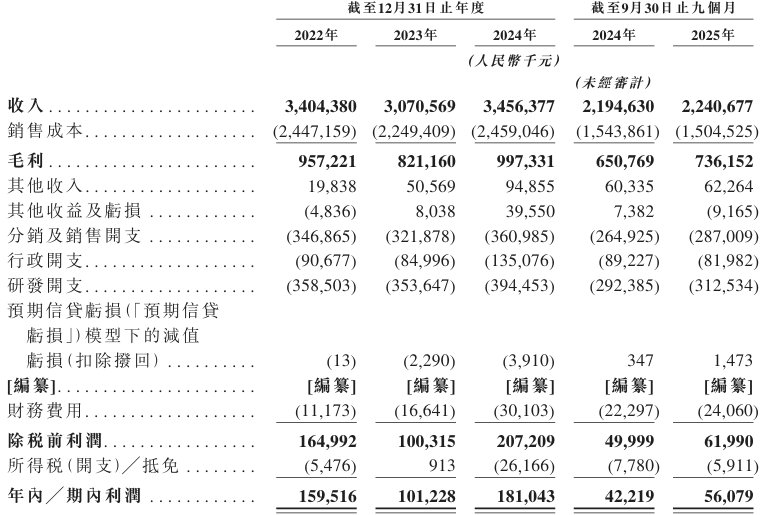 2022年度、2023年度、2024年度及2025年截至9月30日止九个月,该公司年内╱期内利润分别约为1.60亿元、1.01亿元、1.81亿元、5607.9万元人民币。