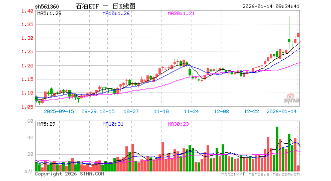 1月14日,石油ETF(561360)开盘涨0.54%,报1.300元。石油ETF(561360)重仓股方面,中国海油开盘涨0.88%,中国石油涨0.60%,中国石化涨0.00%,杰瑞股份涨4.59%,招商轮船涨1.25%,广汇能源涨0.20%,中远海能涨2.82%,恒力石化跌2.22%,招商南油涨0.61%,海油工程涨0.34%。