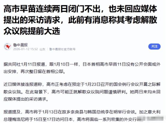 出大事了,高市闭门不出,韩日峰会意外“谈崩”,特朗普急的跳脚   1 月 12