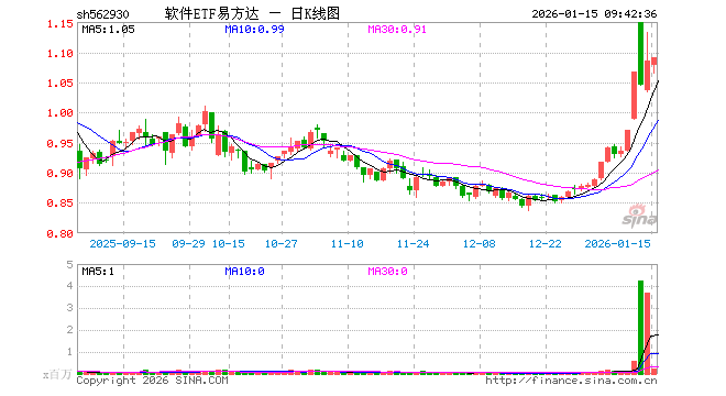 1月15日,软件ETF易方达(562930)开盘跌0.65%,报1.078元。软件ETF易方达(562930)重仓股方面,科大讯飞开盘跌1.56%,同花顺跌2.14%,金山办公跌1.54%,指南针跌0.70%,恒生电子跌2.36%,润和软件涨1.69%,三六零涨2.87%,拓维信息涨4.82%,用友网络跌2.10%。