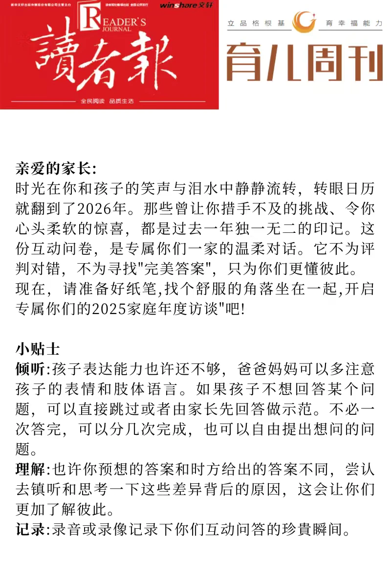 我的2025 育儿周刊 父母课堂 育儿干货 年度报告 父母与孩子 育儿 家庭教育经验分享 亲子 2026