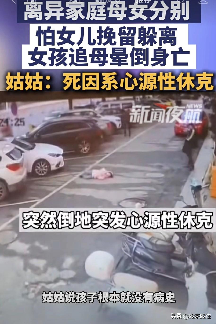 该有多崩溃!多无助! 女儿发现妈妈不见了, 便撕心裂肺地哭喊着四处寻找。 因情绪过于激动,女孩突然晕倒在地,后经抢救无效离世。 心源性休克虽罕见,但强烈情绪应激可能诱发,尤其对儿童。据女孩姑姑表示,孩子生前无病史,死因系心源性休克。 离异家庭母女分别 ,怕女儿挽留躲离 ,女孩追母晕倒身亡!没想到竟成了永别。妈妈👩🏻的心应当是撕裂的,现场应该是钻心的痛。 这给我们敲响了警钟,离异父母不应该只考虑自己的感受 还要多顾忌孩子的感受。在人生的成长道路上,父母是最好的老师。
