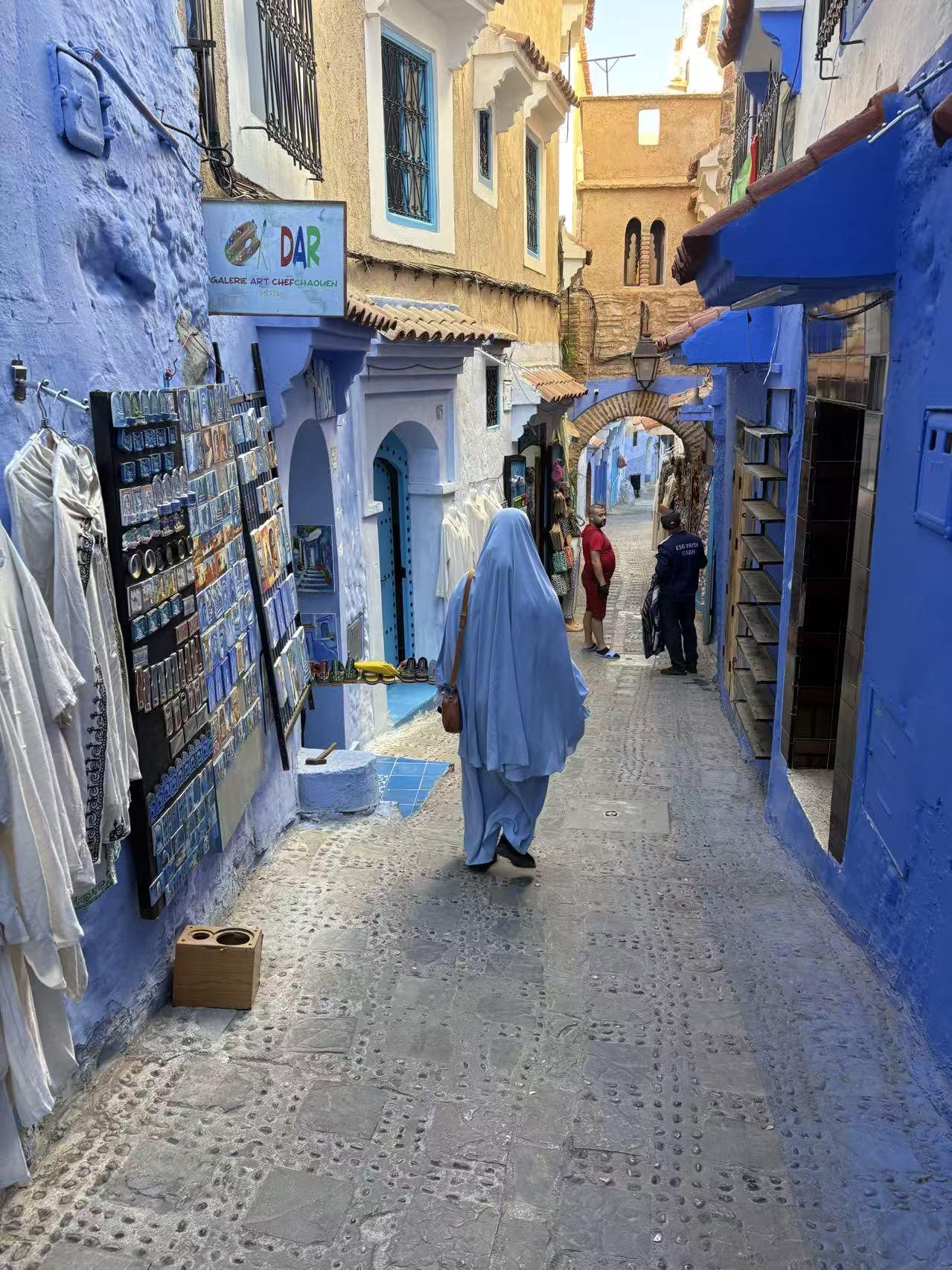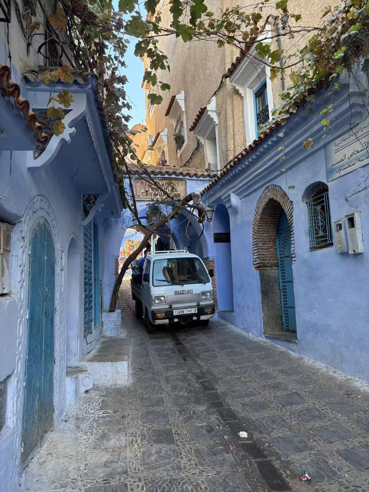 开着中国车来到了非洲摩洛哥的舍夫沙万,由于来到这个蓝色之城的时间有点晚,我随手打开软件准备定一个酒店过夜,综合排序第一位的是一个名叫巴塞罗那的旅馆,位于老城中心位置,价格仅需二三百元的样子。有了之前在菲斯迷路的教训,我不敢把车开的太深入,这次显示离着旅馆还有三四百米的地方,我看有个收费的室内停车场,我就把车停了进去。 前台办完checkin ,老板给了一把我硕大的钥匙就关上门去睡觉了。房子不大,但是我就一个人也无所谓了,简单洗漱一下就躺下睡了。可能是开了一天车太累了,那晚我睡得很香 舍夫沙万不愧是旅游城市,早晨六点开始楼下就开始有游客熙熙攘攘的经过。不到七点的时候,楼下已经可以用人流如织来形容了。我躺在床上,听楼下胡同里一对中国情侣在对话,女的说:你看,这个酒店叫巴塞罗那唉,我好想去那个真的巴塞罗那玩 男的回答:好,那咱们下次就去西班牙,不过我听说塞维利亚比巴塞罗那还好玩 女的反问:塞维利亚在哪啊? 住在二楼的我,实在听不下去了,推开窗户跟他们说:你们要是不去诺坎普看足球比赛的话,听我的,去塞维利亚准没错 楼下的两个人先是面面相觑,然后不约而同的抬头看向发出声音的我,同时问到:真的吗? 我说当然是真的,我前两天刚从巴塞罗那和塞维利亚过来,你们要是不相信,一会儿可以跟着我坐我车走,我定的船票是明天早晨的,我今晚先去休达,明天就回塞维利亚,车上还有五六个位置,你们要不要一起? 两个人哈哈大笑着:不了不了,我们的假期时间有限,而且我们也没有申根签证,下次吧!下次我们再去西班牙,谢谢你了。说罢两个人朝我摇摇手,往胡同深处走去了 我一看时间也不早了,收拾收拾起床吧。楼下这么热闹我也没法睡了,今天还要赶到休达,明早还要坐船过直布罗陀海峡回到西班牙本土
