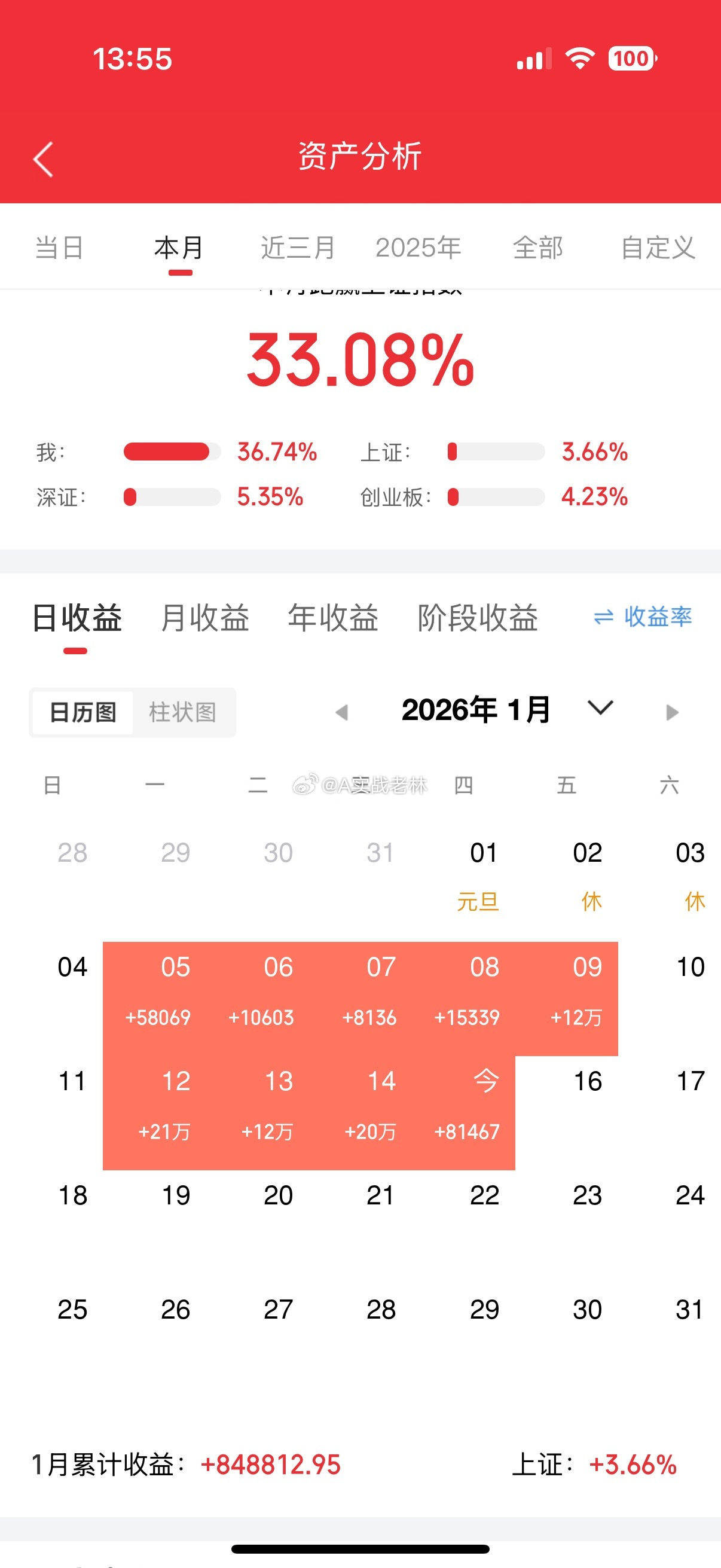 目前仓位只剩大为,最近🍗吃爽了,这个月全红。今天不开新仓点赞评论888支持一下老林