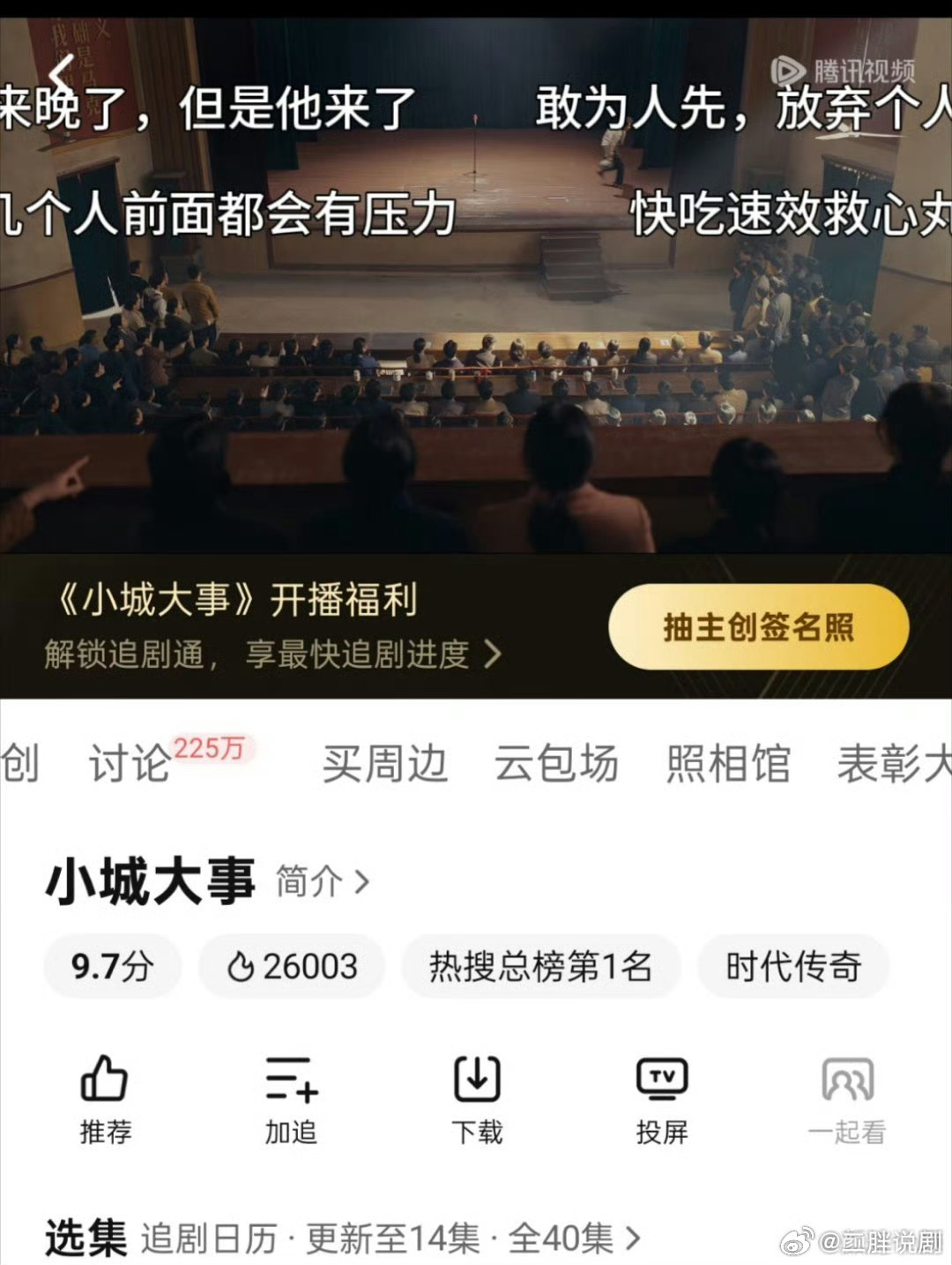 全体起立,由赵丽颖、黄晓明主演的《小城大事 》热度破26000!恭喜!