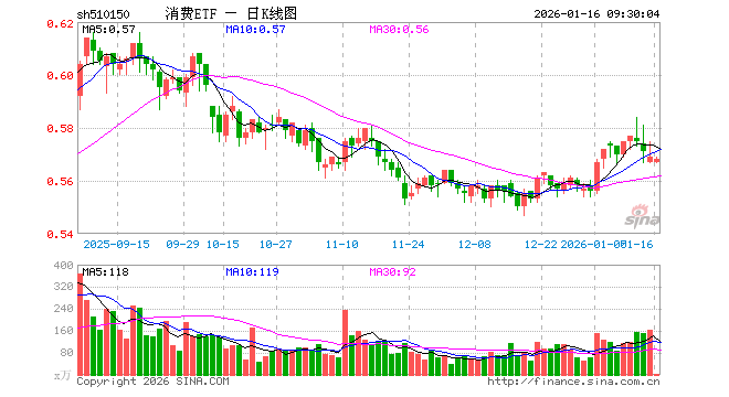 1月16日,消费ETF(510150)开盘跌0.35%,报0.567元。消费ETF(510150)重仓股方面,恒瑞医药开盘涨0.28%,药明康德涨0.02%,贵州茅台涨0.44%,伊利股份涨0.44%,赛力斯涨0.21%,福耀玻璃跌0.31%,海尔智家涨0.35%,山西汾酒涨0.00%,上汽集团涨2.89%,联影医疗涨0.14%。