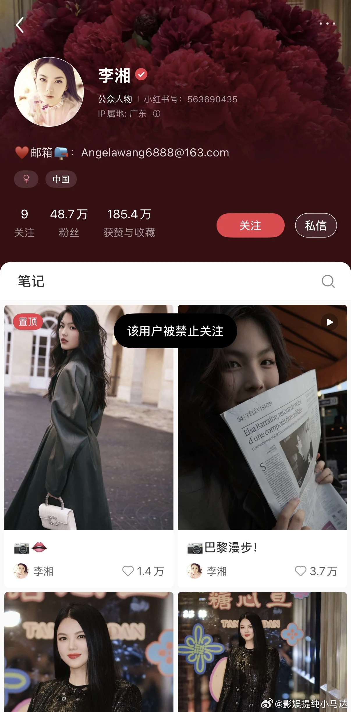 这是怎么回事?李湘全平台账号被禁止关注了,发生了什么?