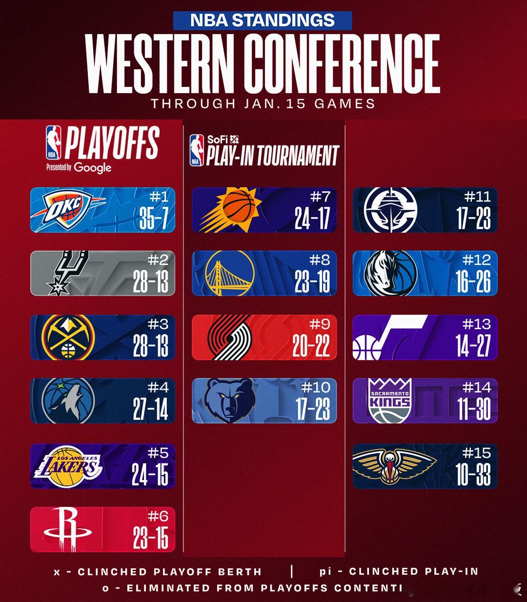 东西部排名⬇️凯尔特人升至东部第2;雷霆5连胜;马刺重回西部第2;湖人、火箭、太阳今日均输球,湖人已落后第4的森林狼两个胜场火箭末节崩盘负雷霆黄蜂战胜湖人