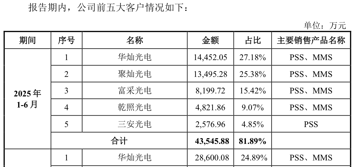 其中,2025年上半年,中图科技对第一大供应商云南蓝晶的采购金额占比达39.9%,对第一大客户华灿光电(300323.SZ)的销售金额占比达到27.18%。