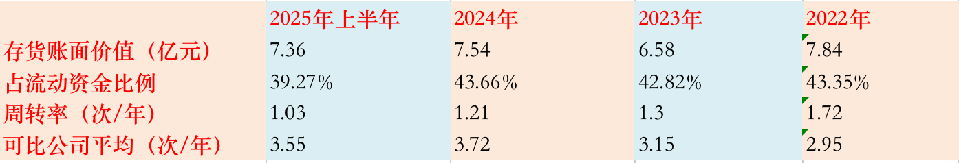 也正因为退役半导体设备的积压,相关业务的收入确认周期较长,拉低了整体存货周转率。数据显示,公司2022年至2025年上半年的存货周转率较同行偏低,且处于下降通道:1.72次/年、1.3次/年、1.21次/年、1.03次/年(2025年上半年已折算全年)。