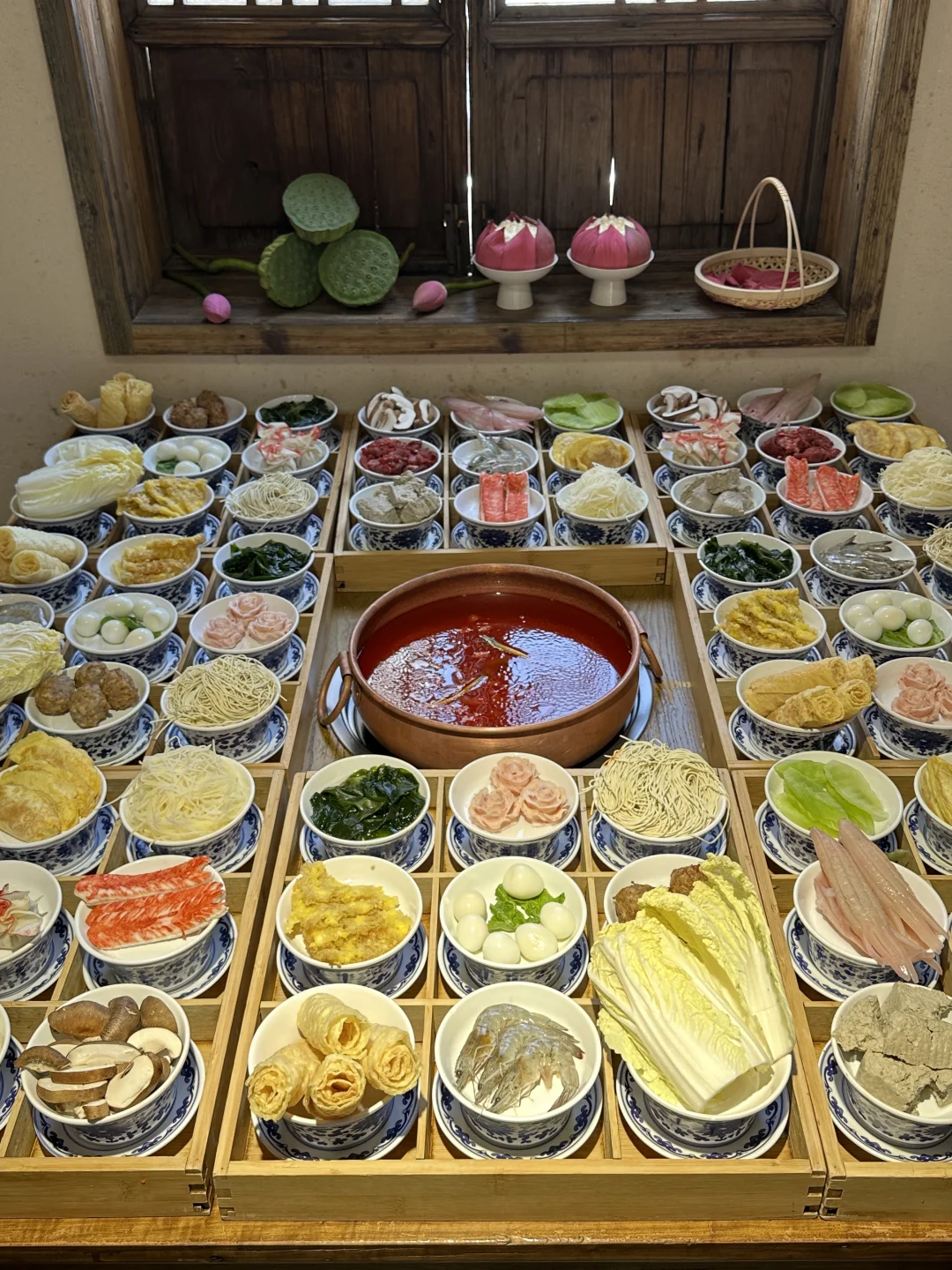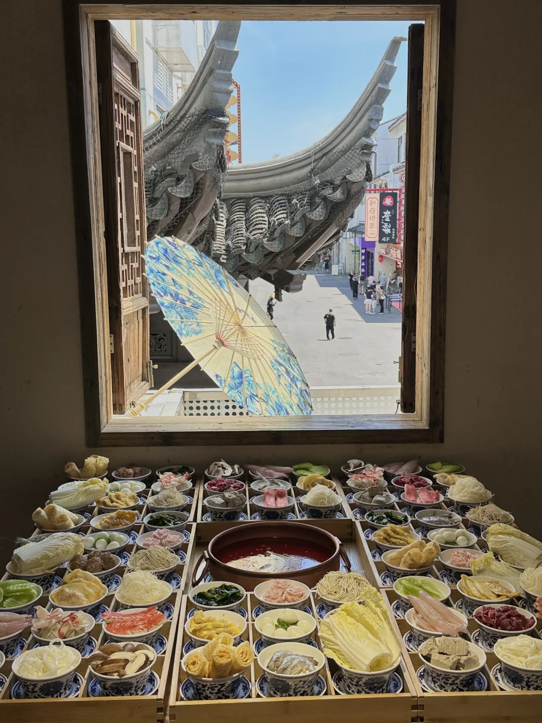 来苏州一下高铁,就直奔这家!! 苏州朋友都推荐这家位于观前街的晚园,正宗苏式火锅,每次来游客都很多,要排队 他家摆盘也很美,符合江南美学的九宫格,锅底是番茄锅底,很正宗的苏式味道,口感酸酸甜甜,越吃越好吃,他家的糖水真的好绝,每次来我都要点一大堆,搭配店里的窗景真的好美,怎么拍都出片 📍晚园·苏式火锅(观前街店)