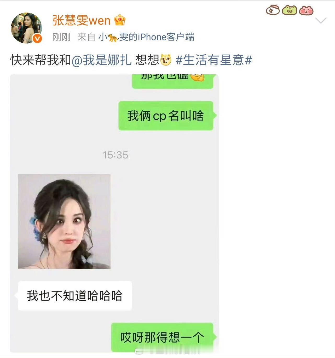 张慧雯娜扎聊天记录内娱闺蜜整活天花板非她俩莫属!晒和聊天记录,两人不但主动甩Q版