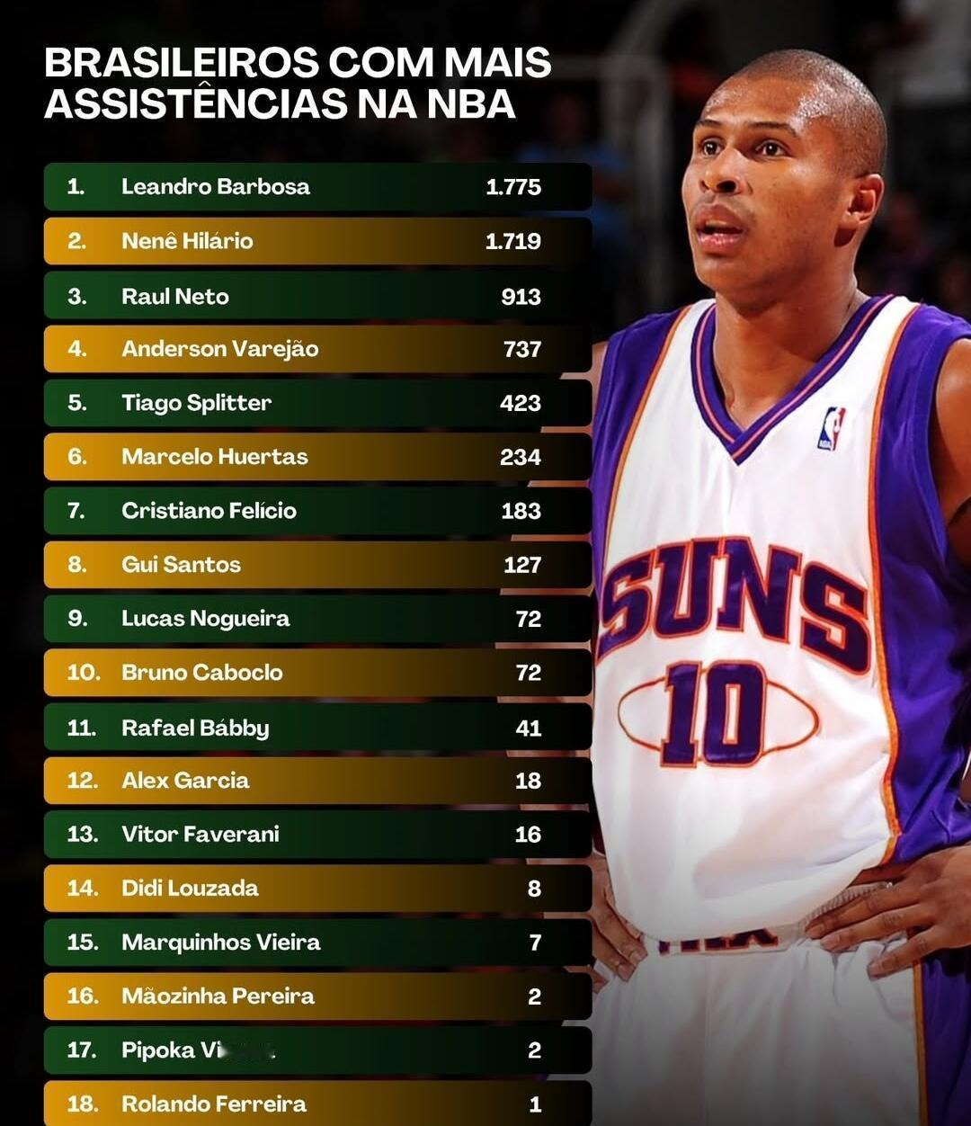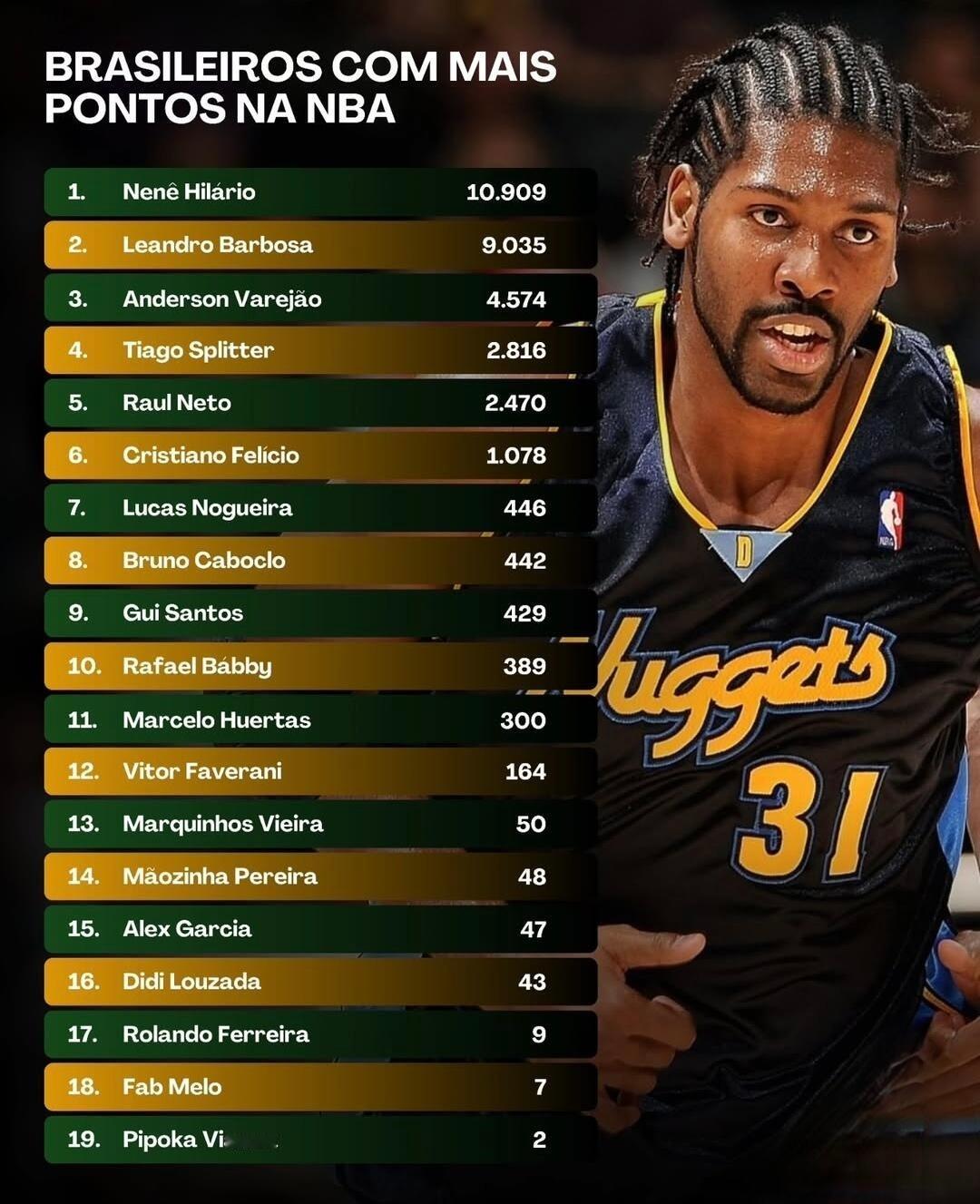 篮天下 NBA历史上巴西球员的各项得分数据统计,谁最让你印象深刻?Images
