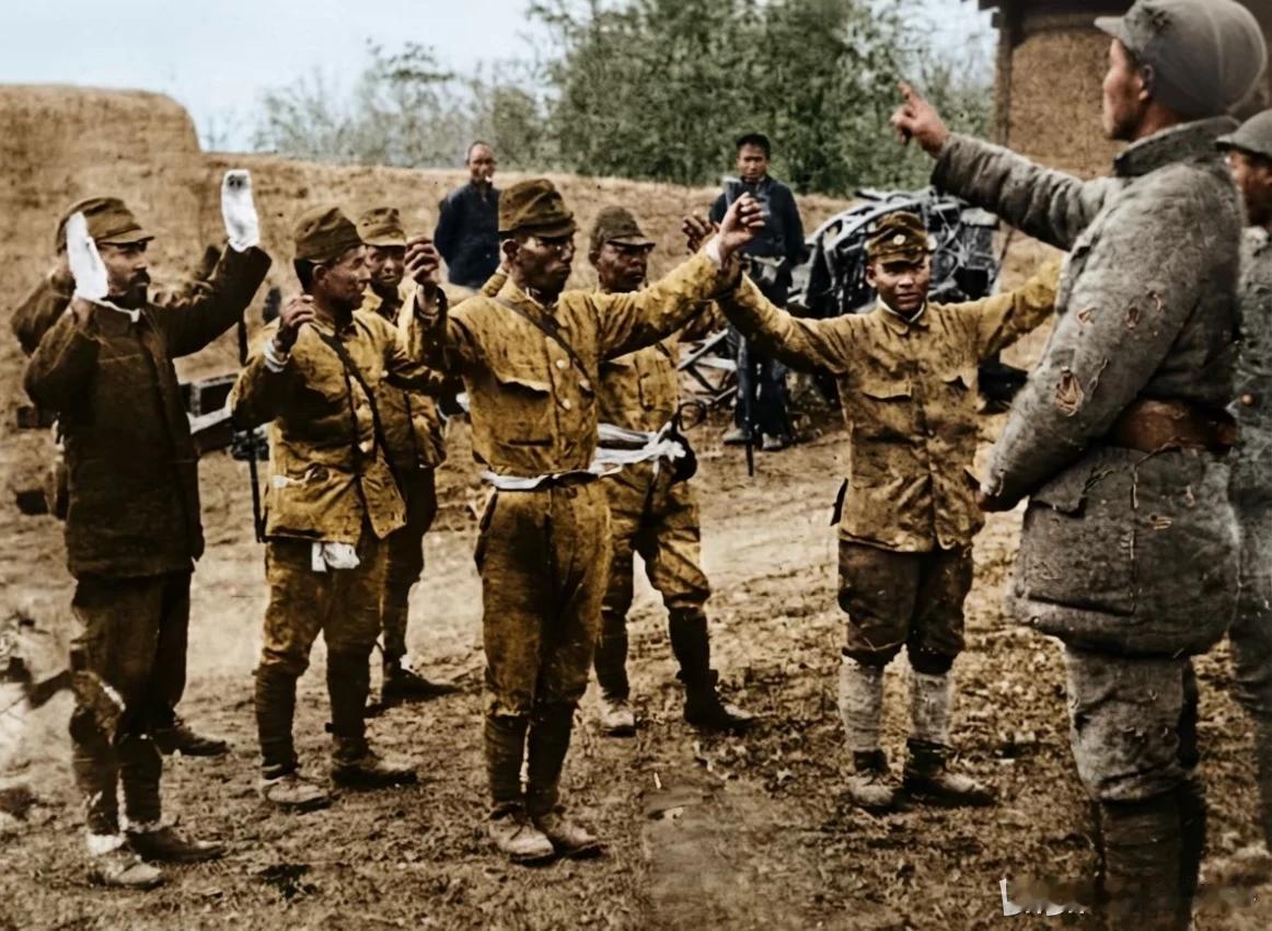 1943年八路军发动郯城战役解放郯城,图为驻守郯城的日军向八路军投降,在短暂解放
