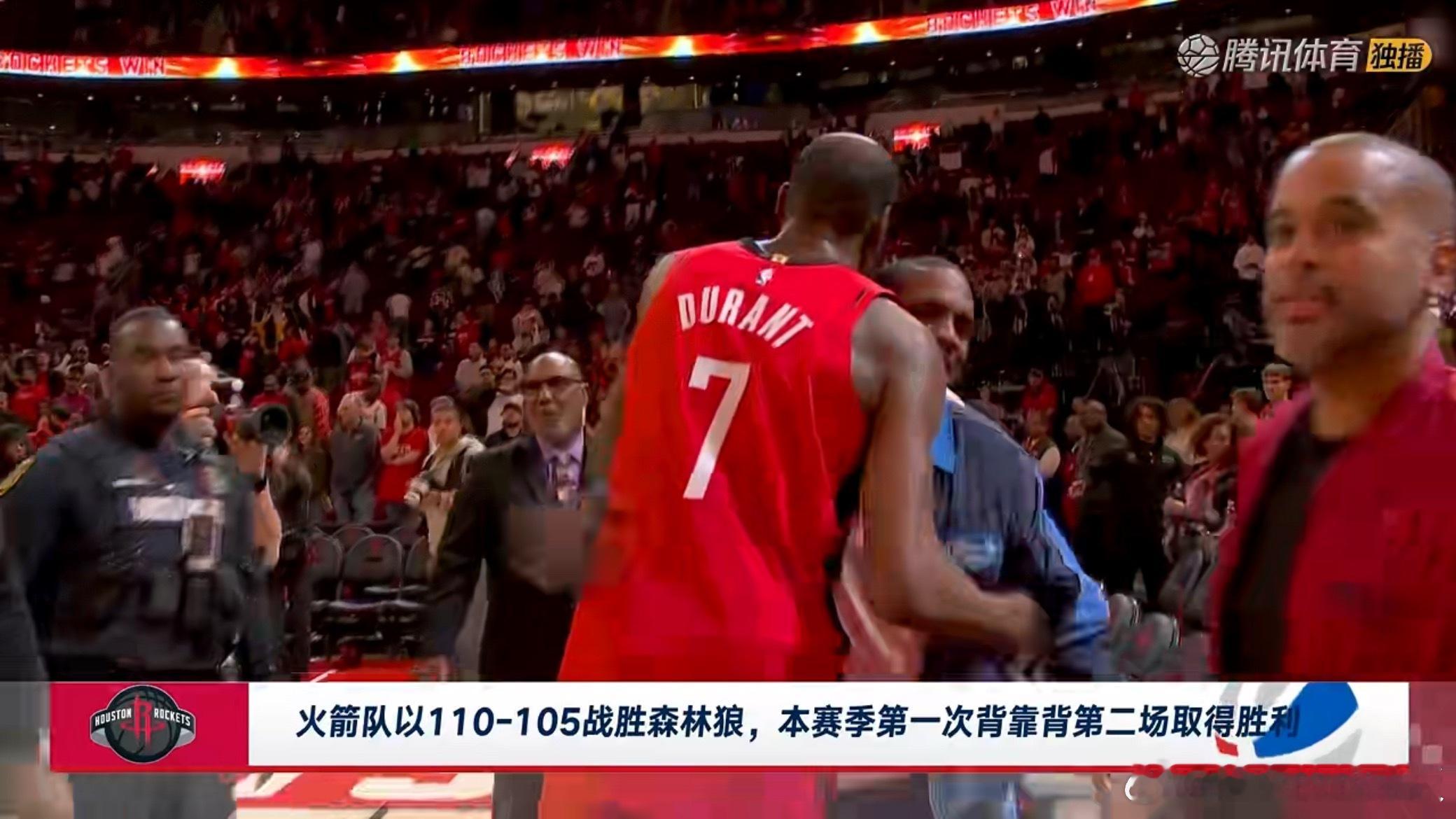 火箭主场110-105战胜森林狼,反超湖人升至西部第5。兰德尔39分,杜兰特39