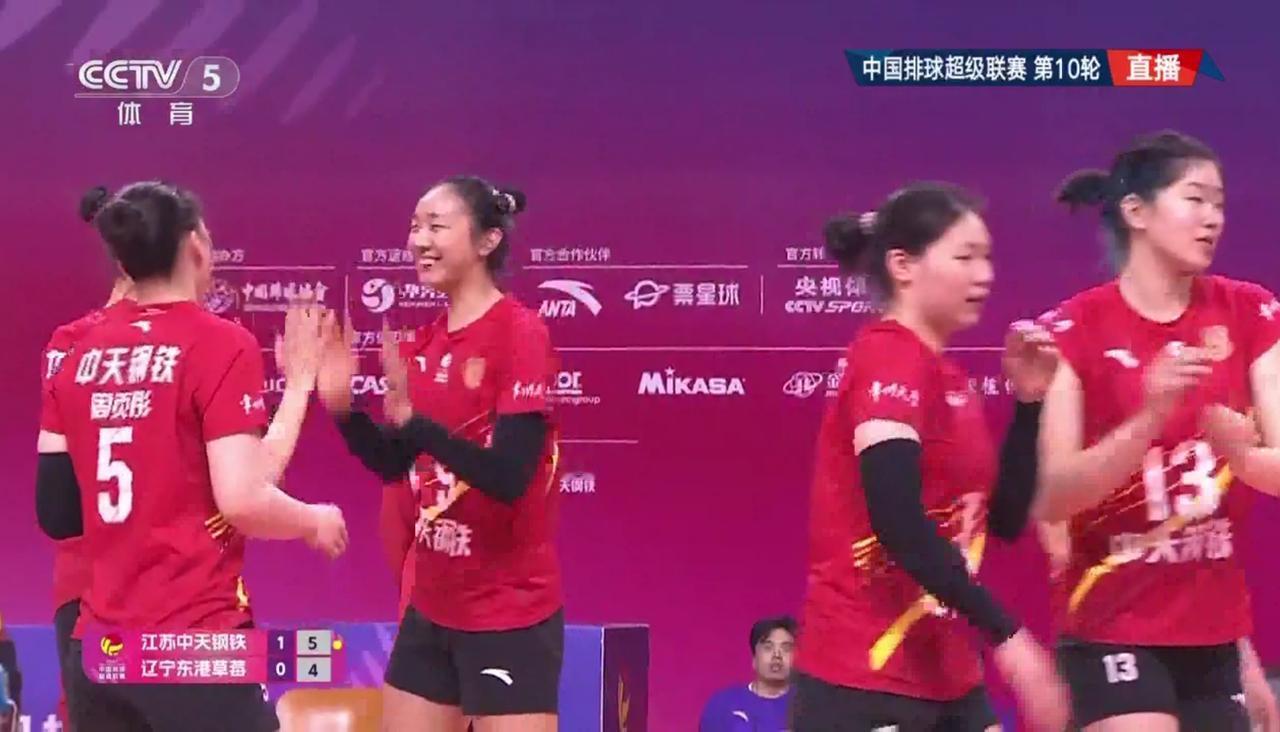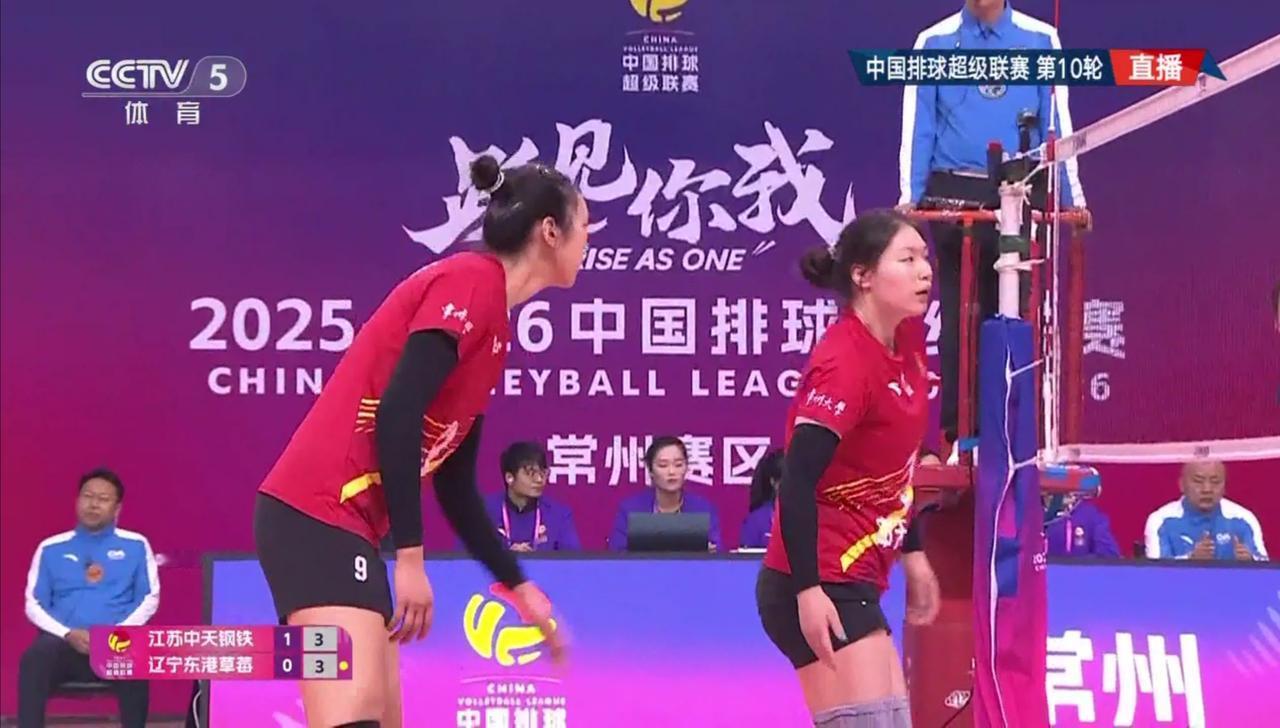 【女排超级联赛】第十轮:江苏——辽宁 实时战况: 1月17日下午16:30分,全国女排超级联赛第十轮江苏——辽宁的比赛在江苏队的主场常州准时开打。第一局开始,1平,2平,周页彤。3平,周页彤。5:3,吴梦洁发球得分。5:4,5平,6:5,万梓玥背飞。6平,8:7,9:7,江苏领先。10:7,辽宁暂停。12:7,唐欣发球得分。12:8,13:8,杨佳。13:9,石冰彤。15:9,15:10,16:10,吴梦洁。17:10,唐欣。辽宁暂停。18:10,唐欣。19:10,万梓玥拦网。22:14,22:15,23:15,江苏领先。24:15,江苏局点。24:16,石冰彤。25:16,江苏胜第一局,大比分1:0,江苏领先! 第二局比赛正在进行中……