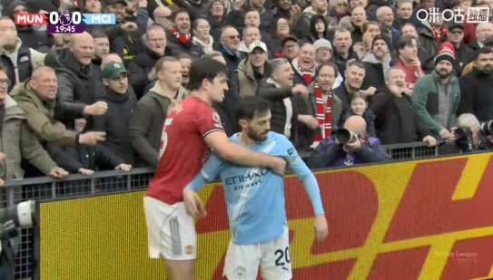 直播吧01月17日讯曼市德比第20分钟,马奎尔护球出底线,B席逼抢下两人双双倒地。