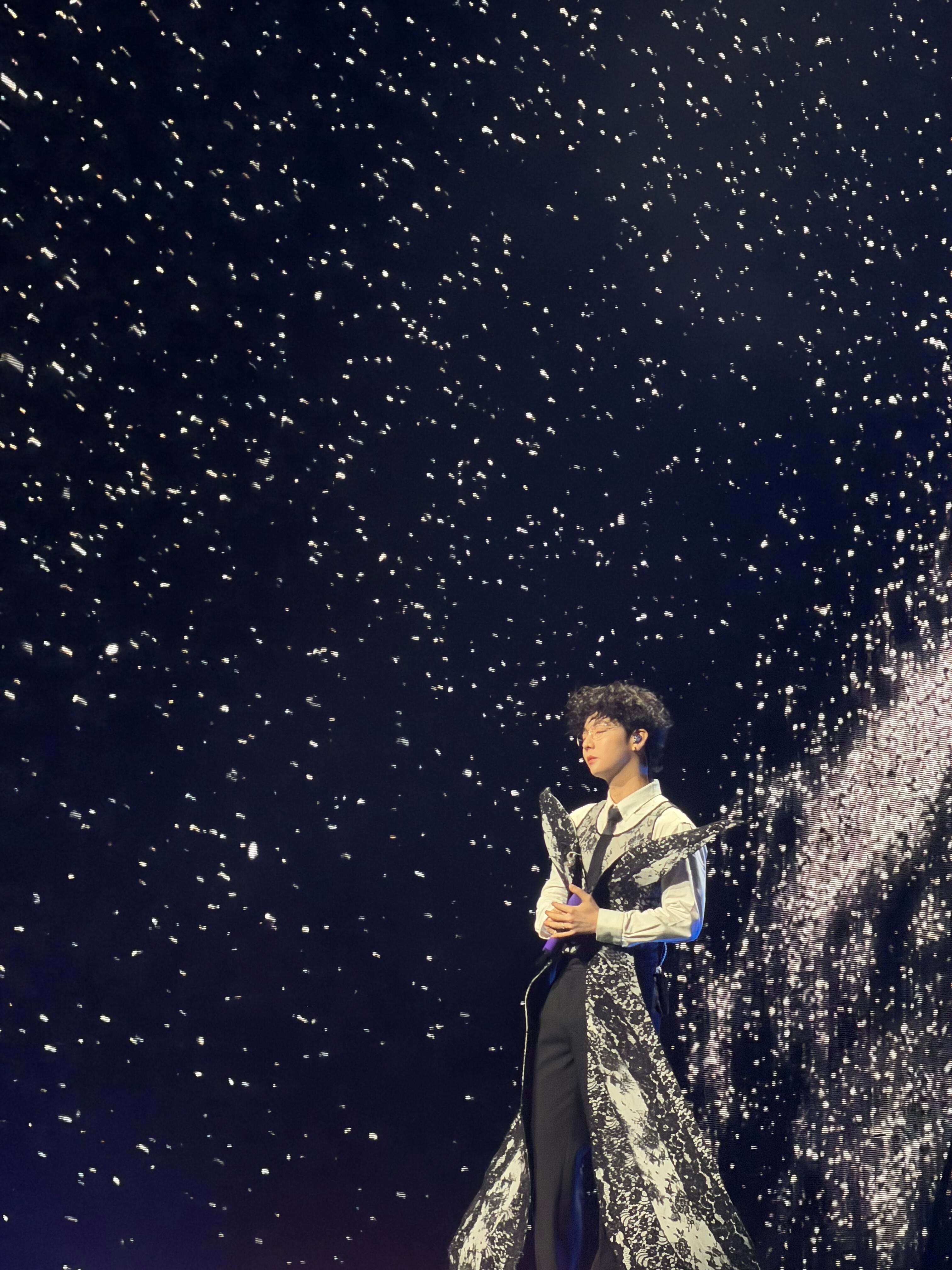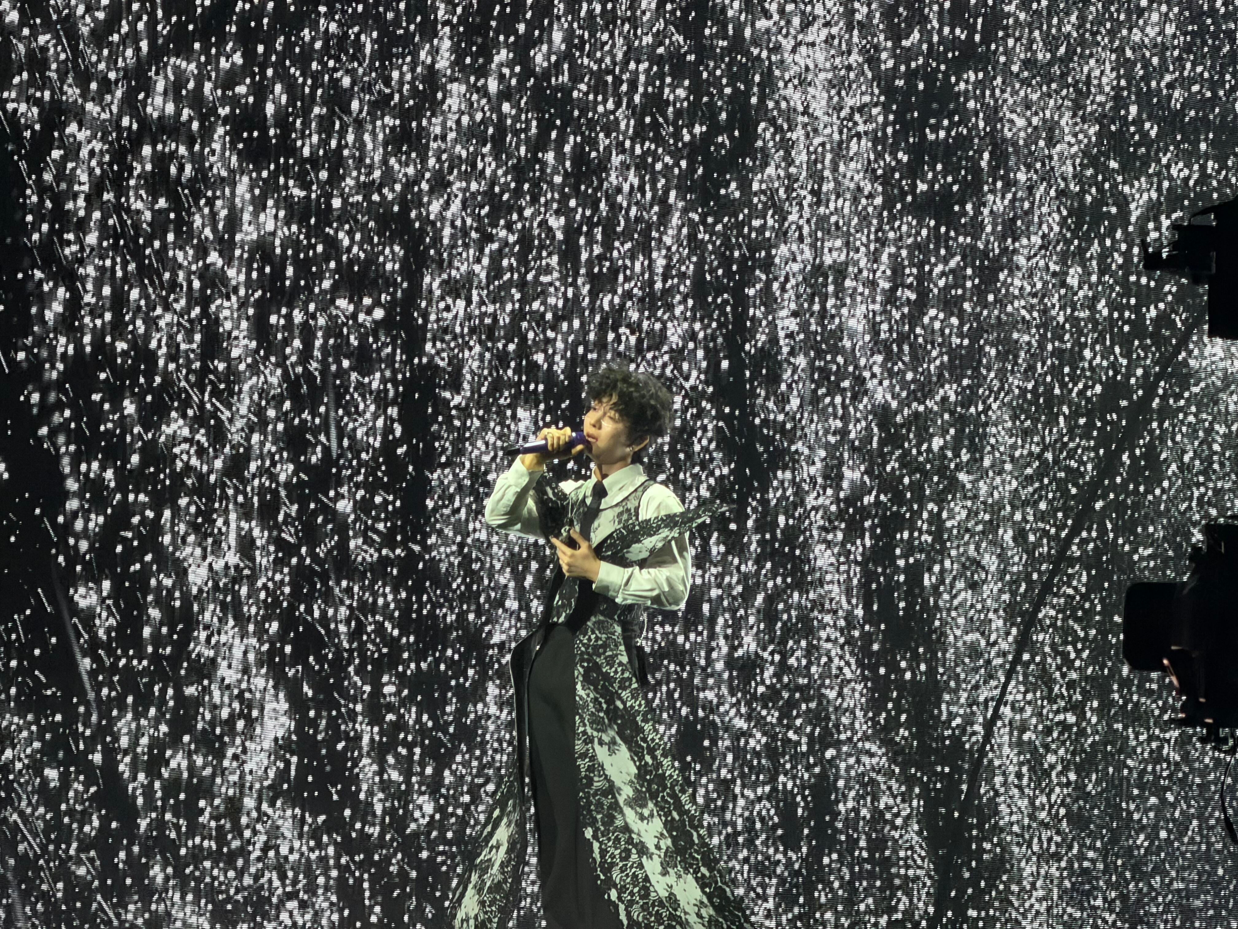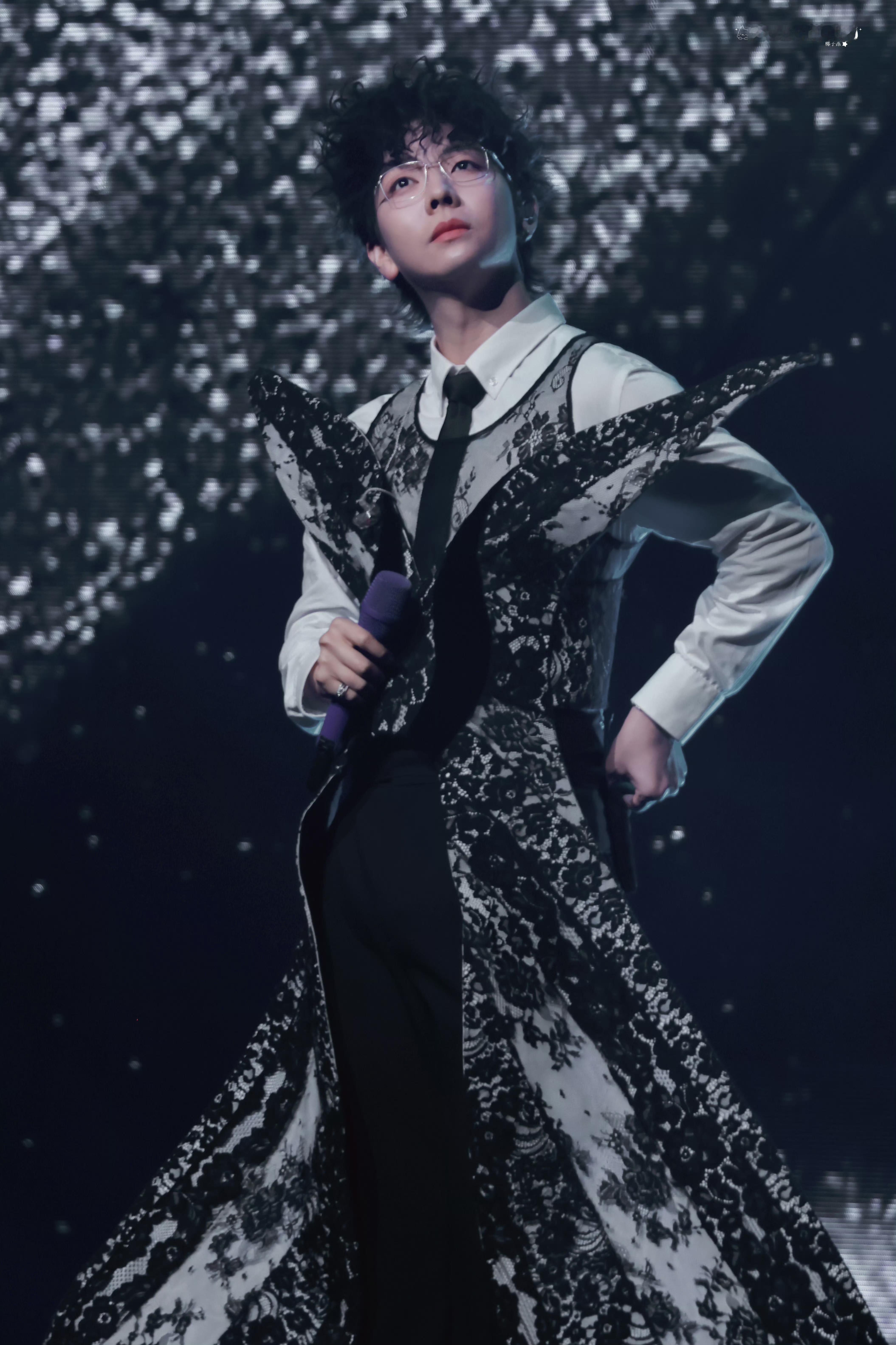 胡夏发色仅供参考 以为白毛会被带到演唱会结果反转再反转 好漂亮的舞美和蝴蝶妆造 黑色卷毛也太符合黑白蕾丝的质感了 胡夏《那些年·时光放映厅》苏州收官场哥真的准备了好多🥹🥹