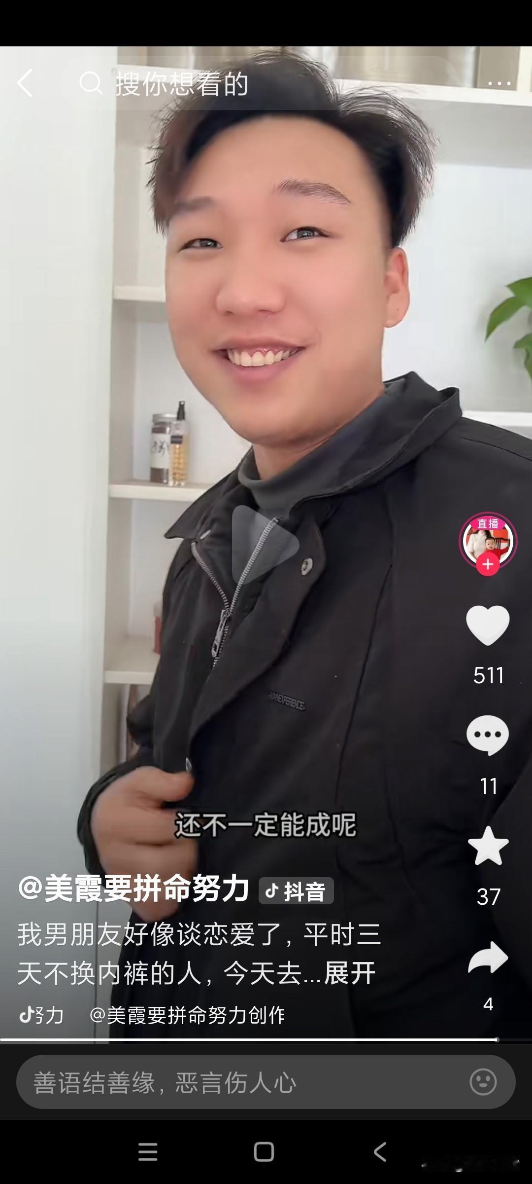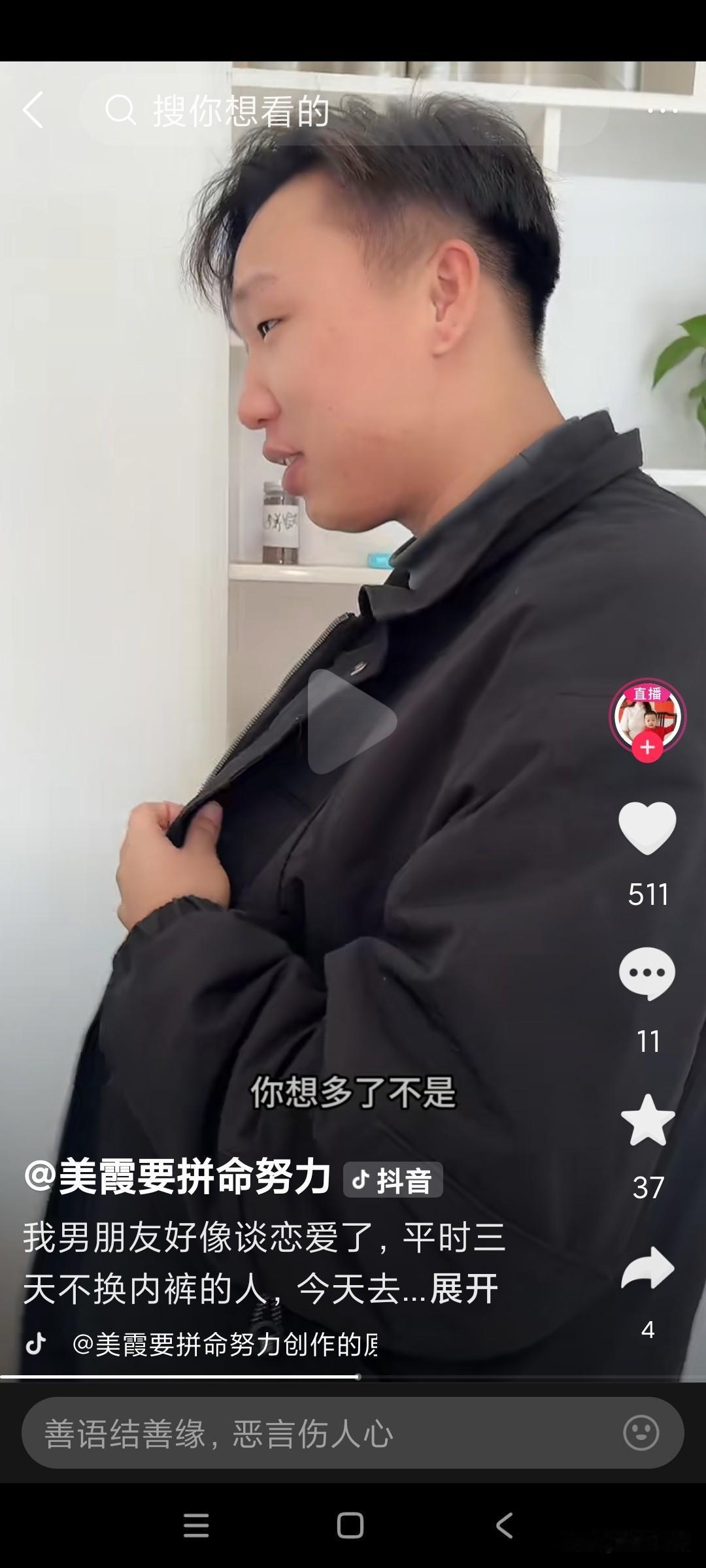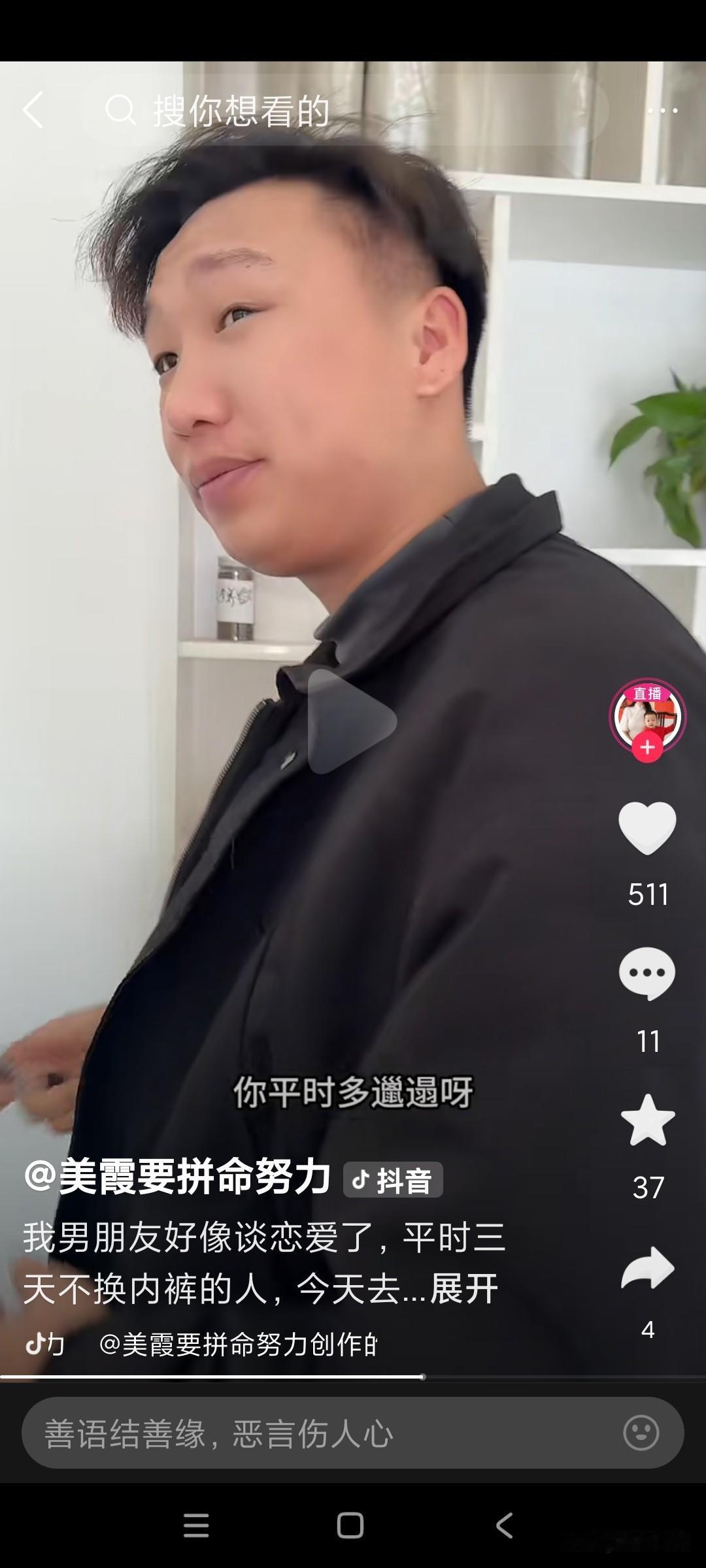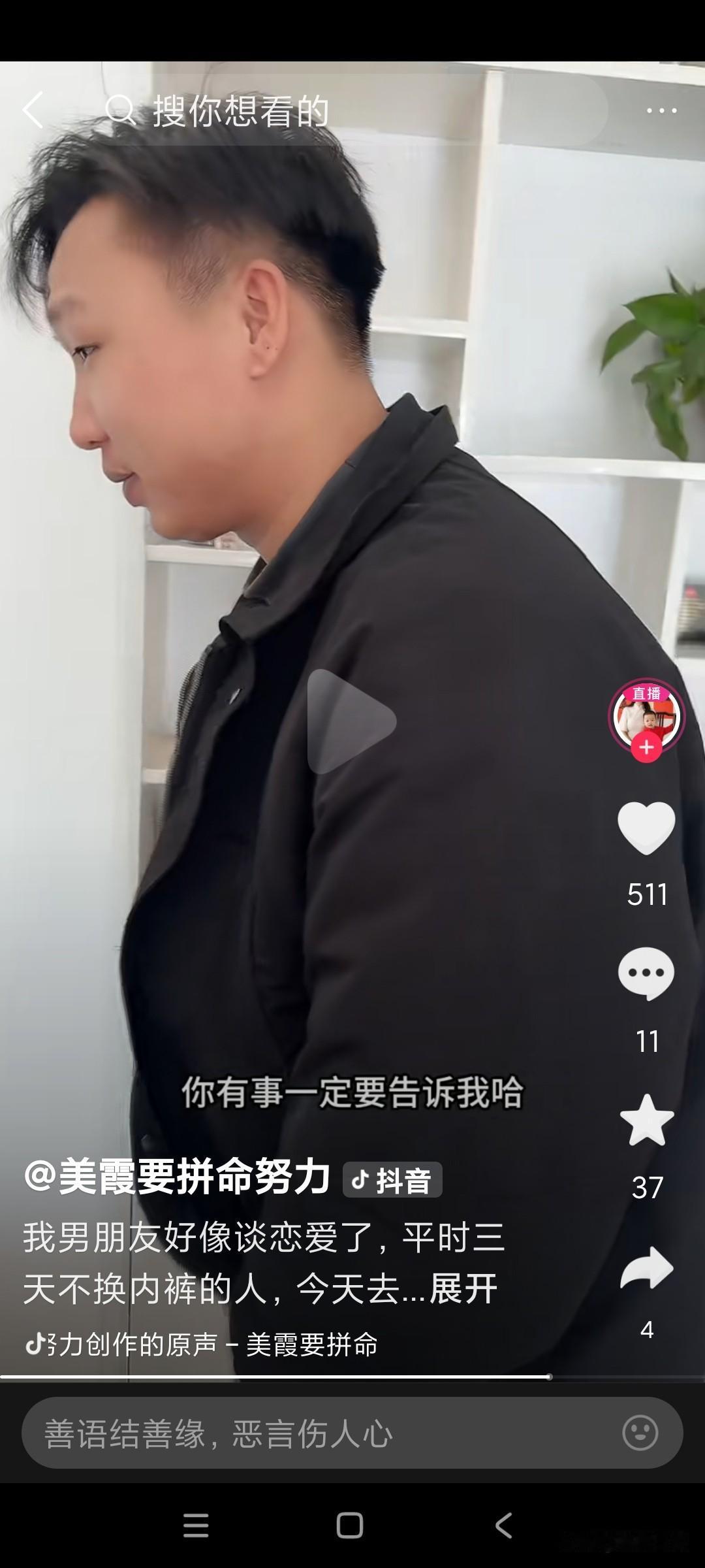 美霞大概是没有素材拍了吧?今天看他发了一条很无聊的视频来博眼球, 美霞说他男朋友好像谈恋爱了,但美霞自己的反应不吵不闹,男朋友跟另一个人谈恋爱,好像觉得无所,美霞跟他男朋友说,你有事,一定要告诉我,我好给你们腾位置,一看他这条视频就知道是假的很,如果他男朋友真的是跟另外一个人谈恋爱的话,他还有这么平静吗?他不吵翻天才怪呢?