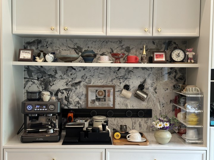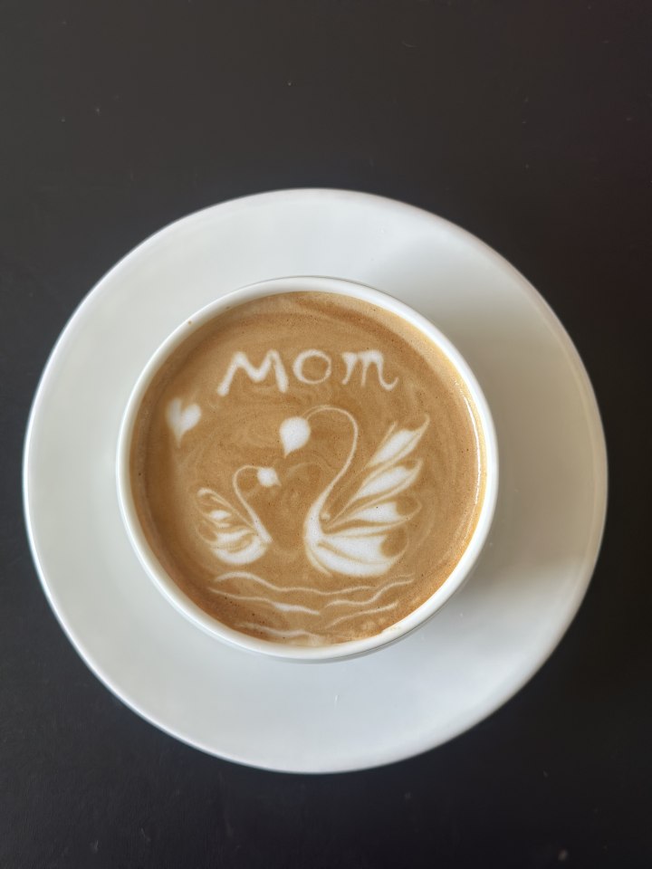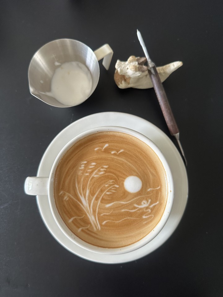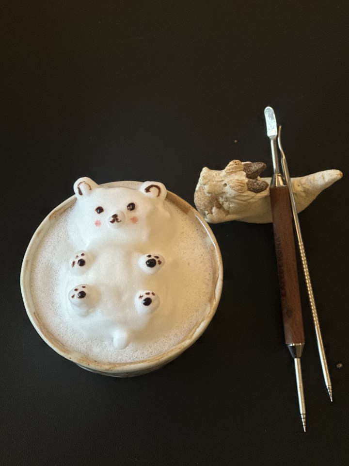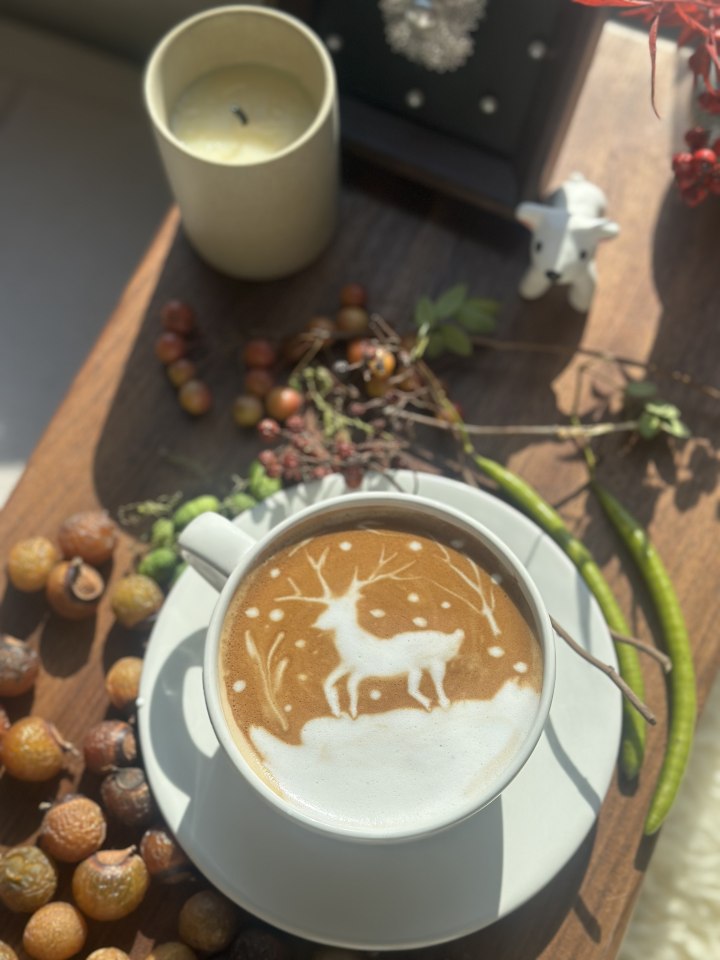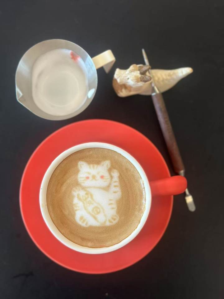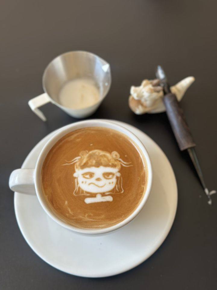 这其中,咖啡雕花绝对是她投入心血最多的一项,为此,还专门在家中精心布置了咖啡一角。