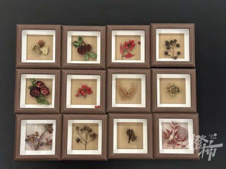 插花、装裱是陈智勤的另一大爱好。“不下雨就爬山,经常在家后面的山路散散步,顺带沿途采摘一些花草素材,主打一个野趣。”