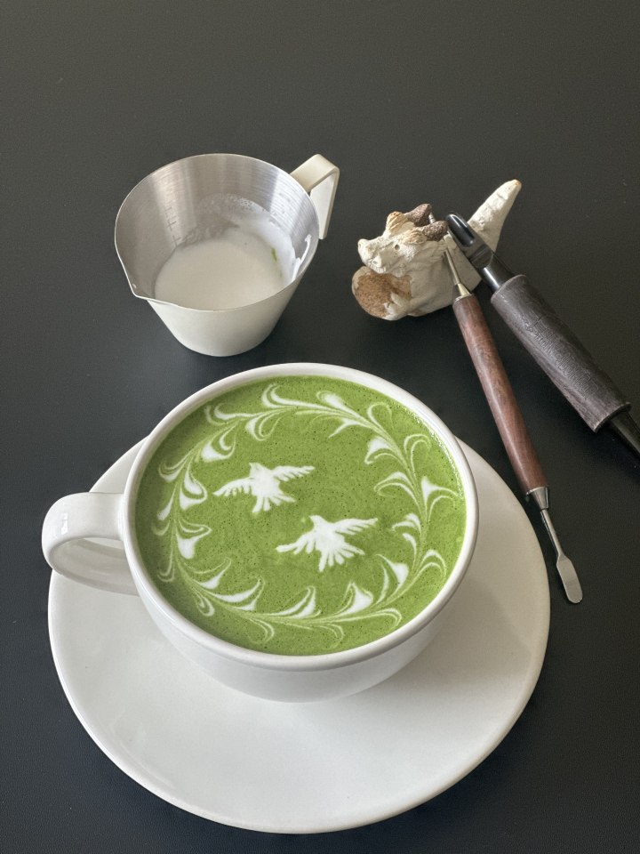 她特别享受这份创作的过程,并把近两年咖啡拉花作品做成一本精美的相册,记录自己两年的进步轨迹!也正因这份对手艺的专注与热爱,她后来通过视频自学宋代点茶,效果同样很惊艳。“因为和咖啡雕花有异曲同工之处,”她说。
