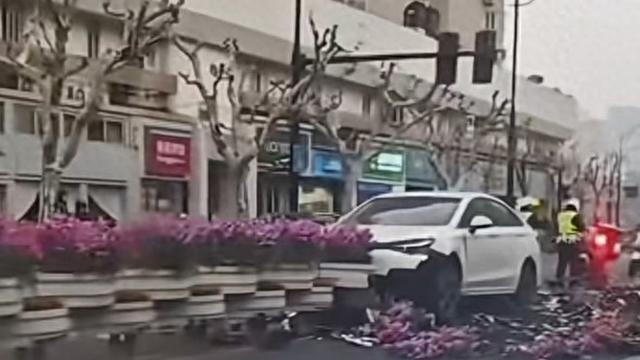 昨天(1月17日)上午,有网友向新民晚报记者报料称,华山路近淮海中路发生一起单车事故:一辆新能源轿车撞上道路中央的隔离花坛,导致车辆及花坛受损。幸运的是,这起车祸并未造成人员伤亡。