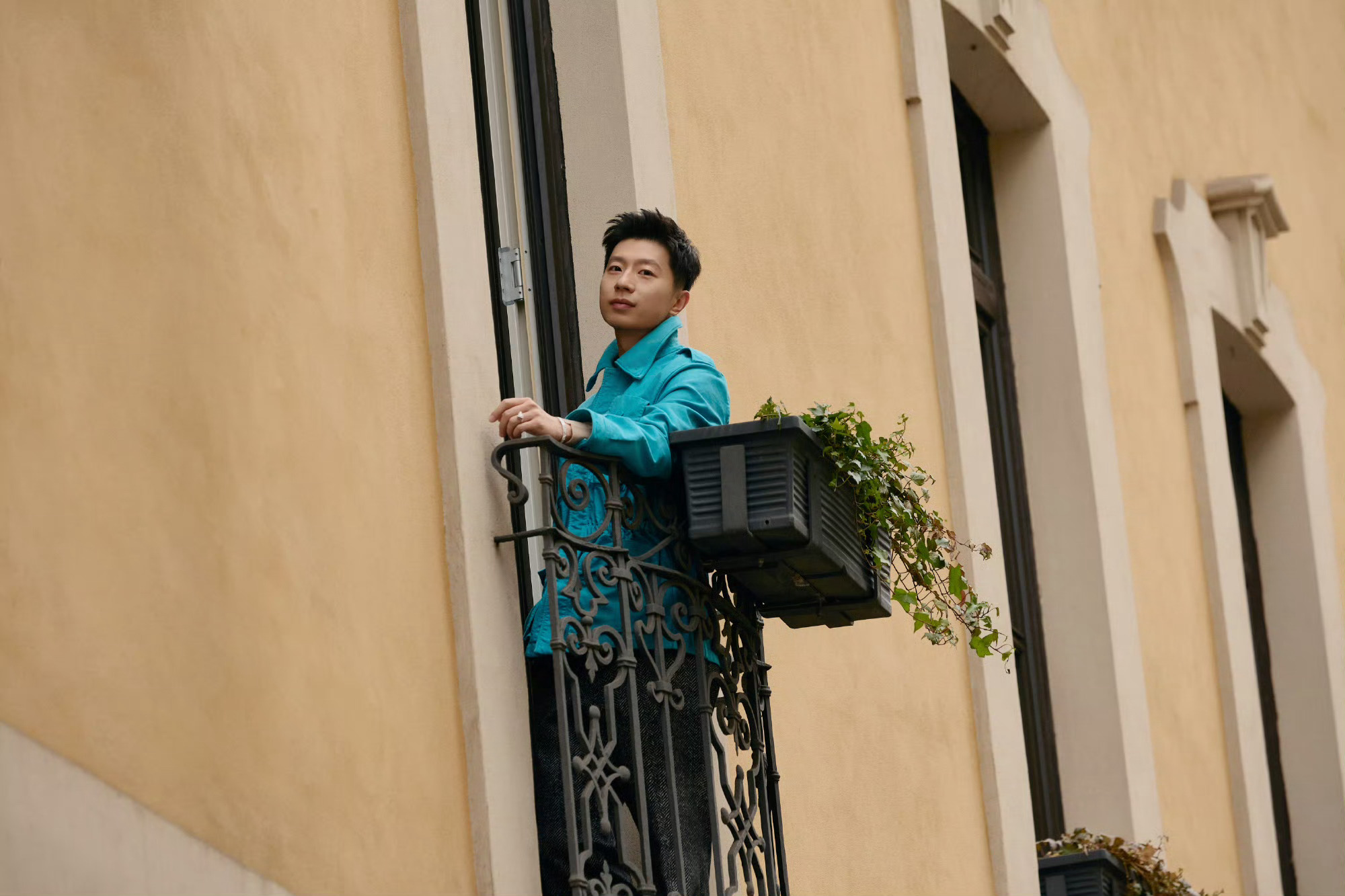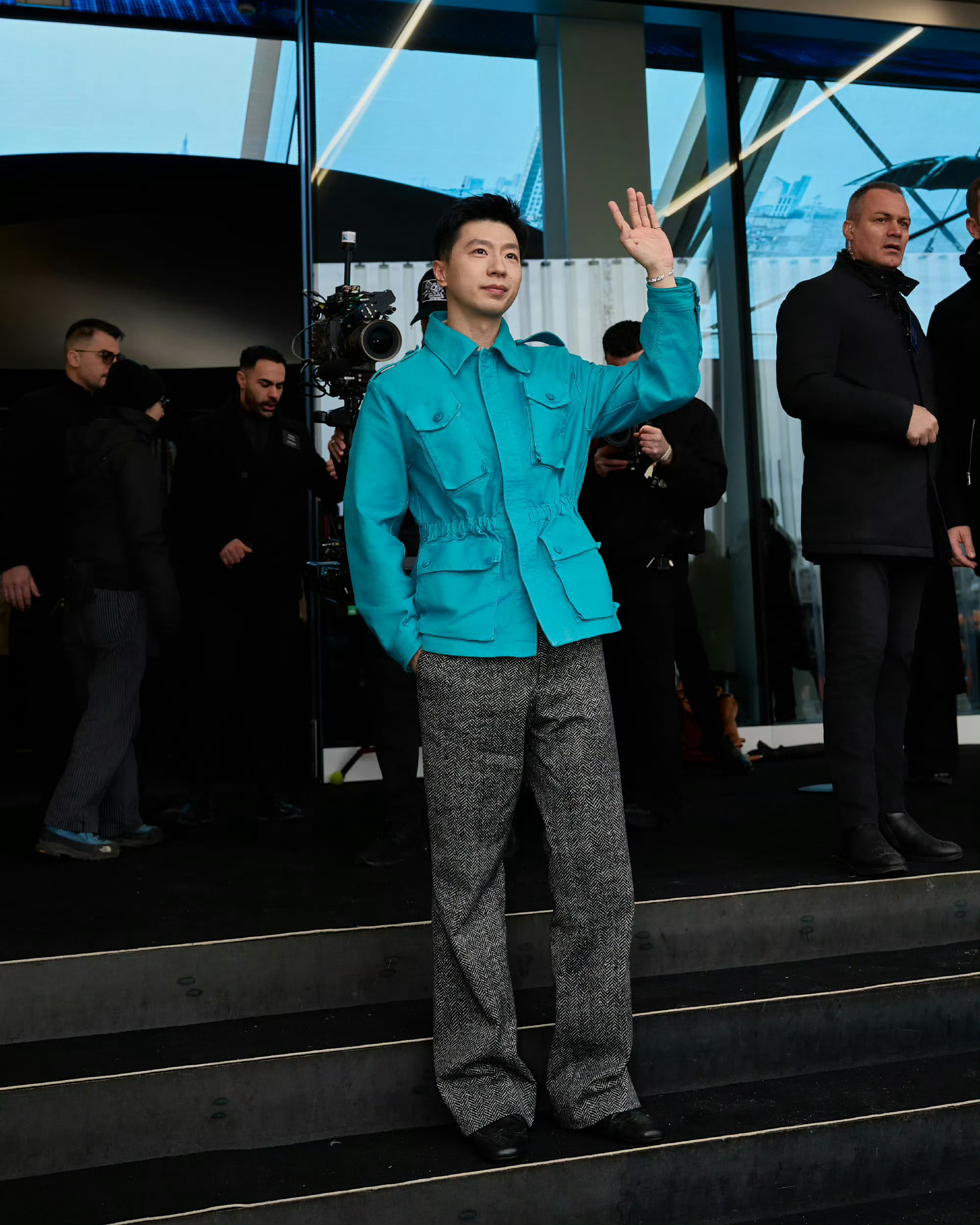 马龙又穿亮蓝色了 继去年时装周穿了亮蓝色夹克,今年马龙再度亮蓝点缀登场。又米又蓝