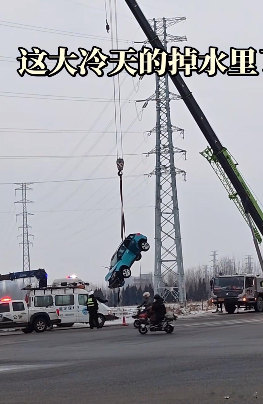 保定北二环桥头昨天发生了惊险的一幕! 由于雪天路滑,一辆车由于拐弯时速过快直接冲进了桥下的河里。 不过幸亏路人发现及时,用长杆和网绳将落水司机救出,据说第一个发现司机的人是在河边垂钓的,看来垂钓还真是很有必要啊! 司机是没什么大碍了,但是车辆损毁比较严重,最后是直接用吊车钓上来的,不知道这种情况保险公司该怎么赔偿呢? 这几天保定下雪,建议大家出门开车一定要慢,如果驾驶技术不好,建议还是坐公交比较好,大觉得呢?