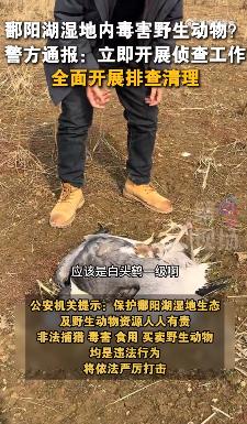 公安机关提示:保护鄱阳湖湿地生态及野生动物资源人人有责,非法捕猎、毒害、食用、买卖野生动物均是违法行为,我们将依法严厉打击。衷心感谢社会各界监督和支持。