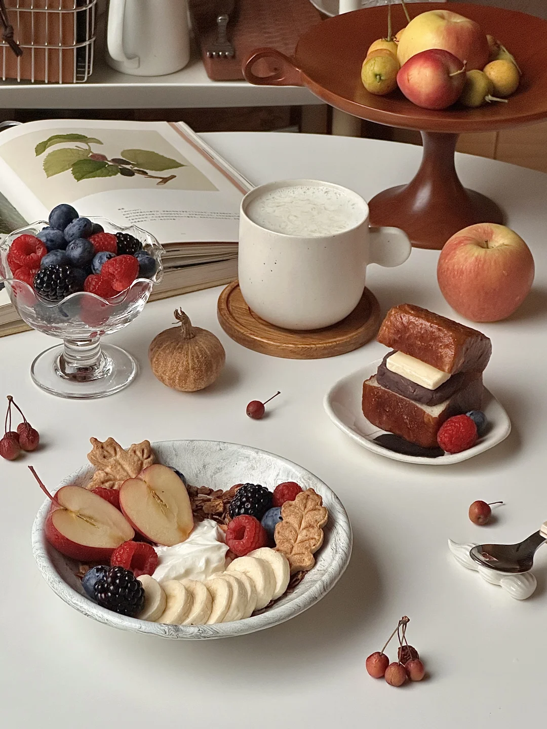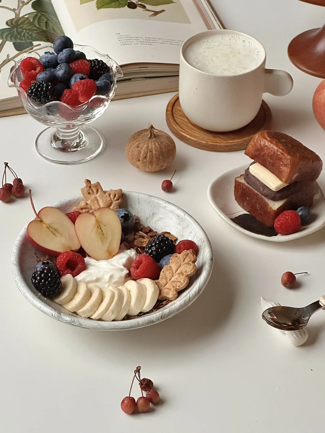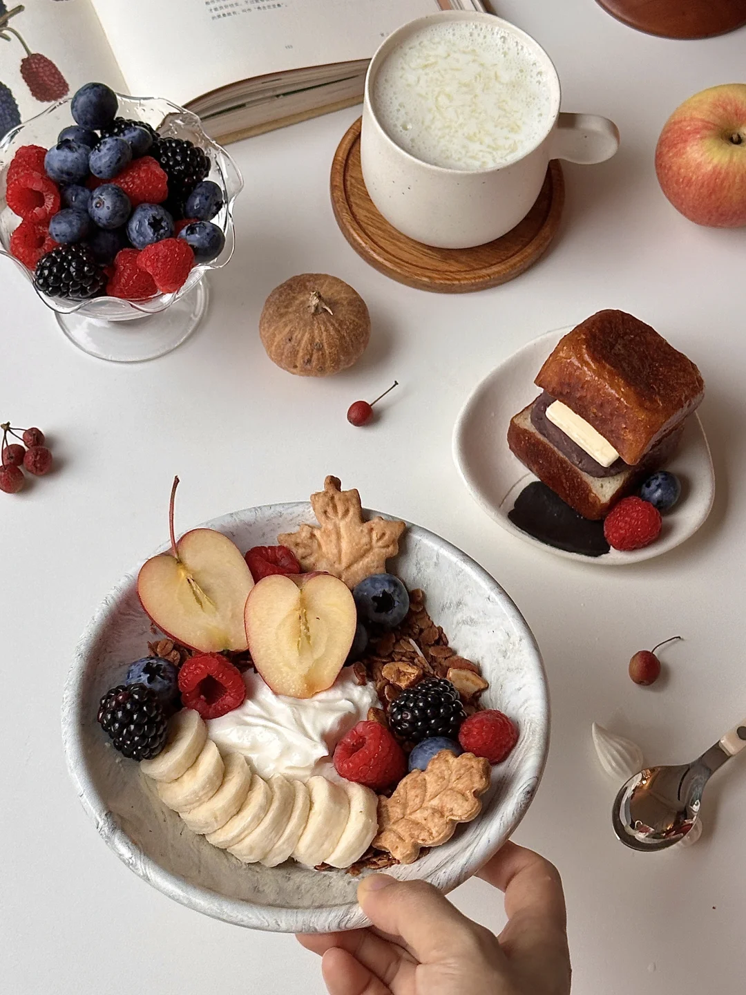 今日漂亮饭📜 🥣浆果酸奶碗 🍞黄油红豆碱水吐司 🥛热牛奶