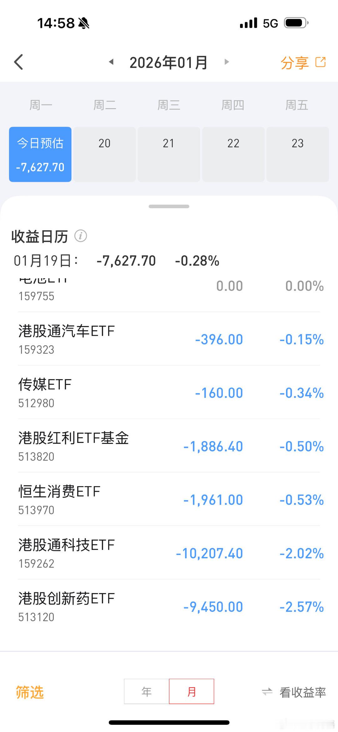 今天巨亏7千多,航天航空涨了,其他港股etf都跌了,尤其是港股创新药….大家今天