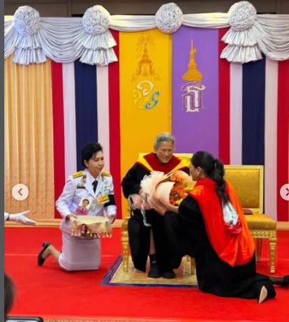 泰国小公主思蕊梵的命真的不是一般的好,泰王玛哈这么多子女,目前只有她一人陪伴在身边了。 思蕊梵的四个同母哥哥被流放,小王子提帮功在德国留学,王后和其他嫔妃即使爆出有子嗣,但泰王一概不承认。 现在就连泰国官方新闻,也经常报道她,把她和太后诗丽吉还有玛哈相提并论。 2026年1月19日星期一 ,诗纳卡宁威洛大学授予思蕊梵公主2024学年时装设计创新专业荣誉文学博士学位。 这是诗纳卡宁威洛大学的最高荣誉,也是创造创新时尚的宝贵典范,诗琳通公主亲自为她颁奖。 这对姑侄看起来感情还挺好的,诗琳通公主看着思蕊梵喜笑颜开,一副慈爱的样子。