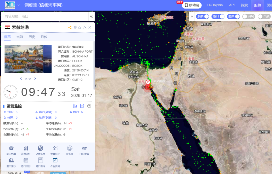 据信德海事网了解,中远海运港口此前已经在埃及已布局塞得港苏伊士运河码头,苏科纳红海码头的投运,意味着中远海运港口在苏伊士运河相关区域的港口物流网络进一步完善:一个在地中海/运河北端,一个在红海/运河南端,能够形成更有弹性的门户组合,为不同航线组织、不同货流方向、不同客户需求提供更灵活的选择与冗余。